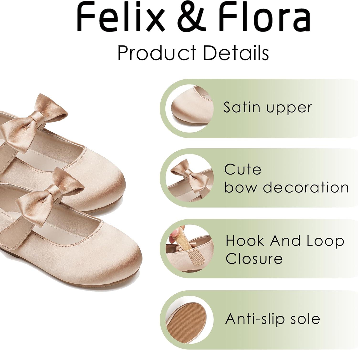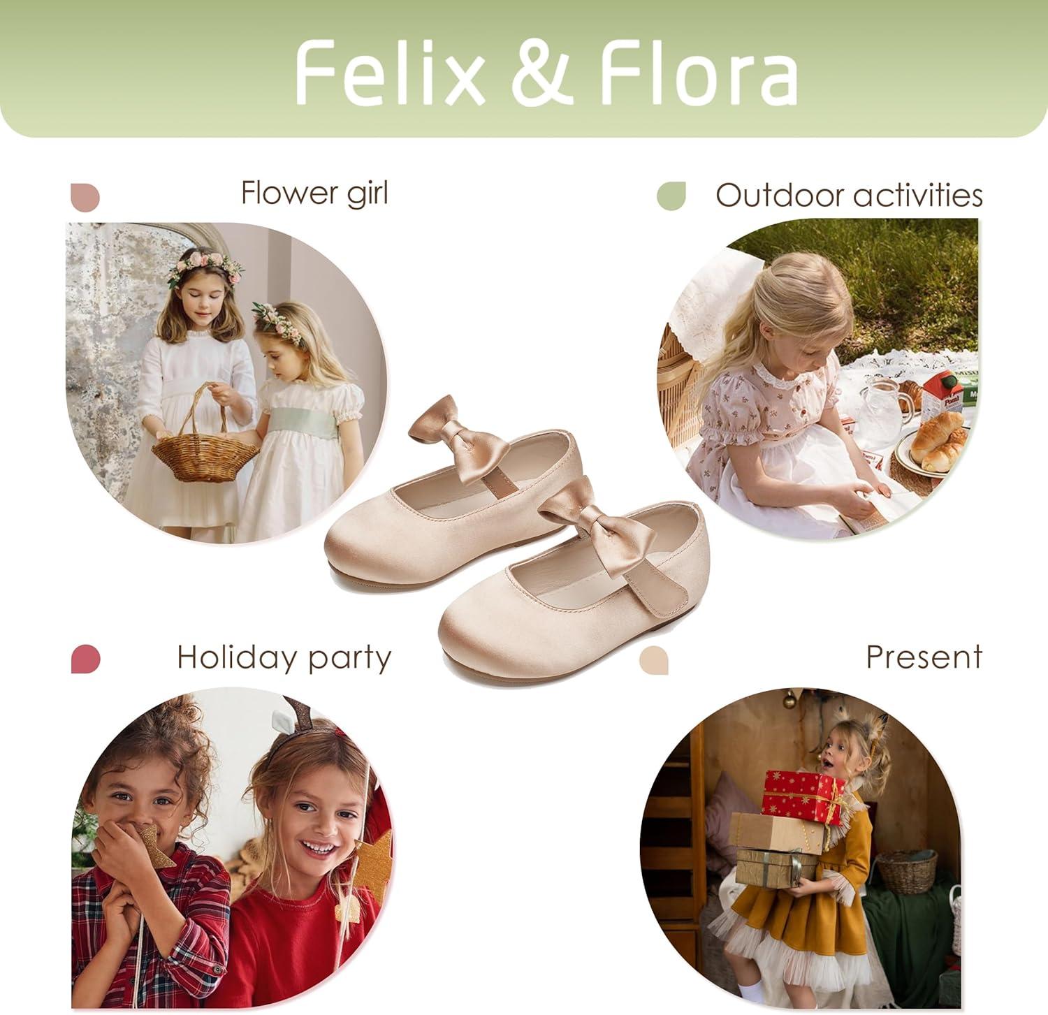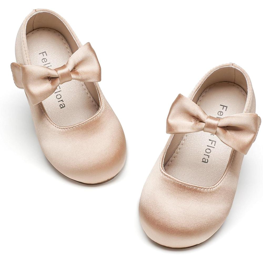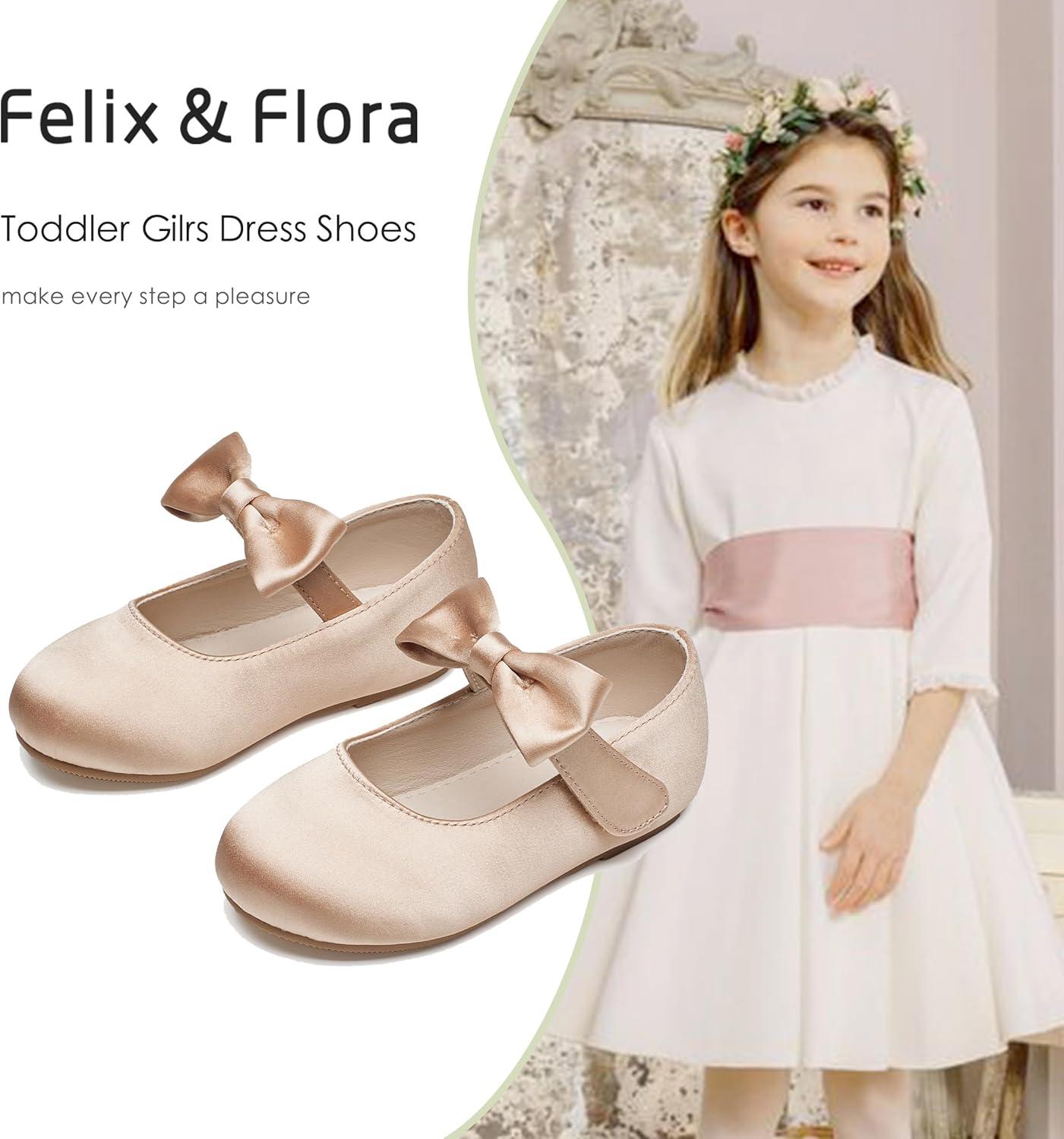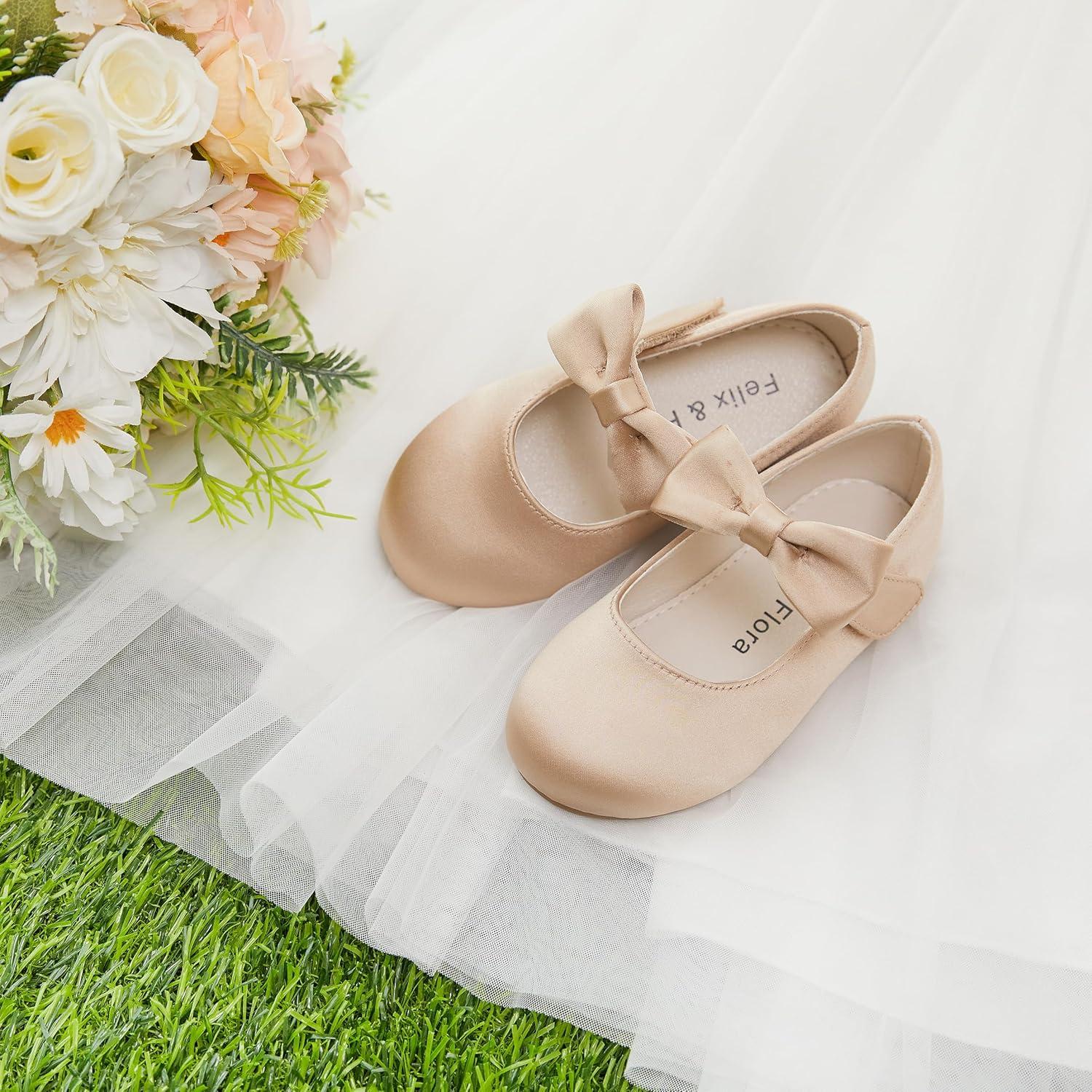 Felix & Flora Toddler Little Girls Dress Shoes – Flower Girls Mary Jane Flats Ballet Shoes Party Wedding(B900-dark Nude)