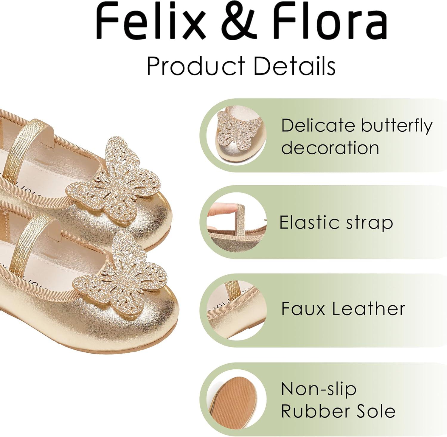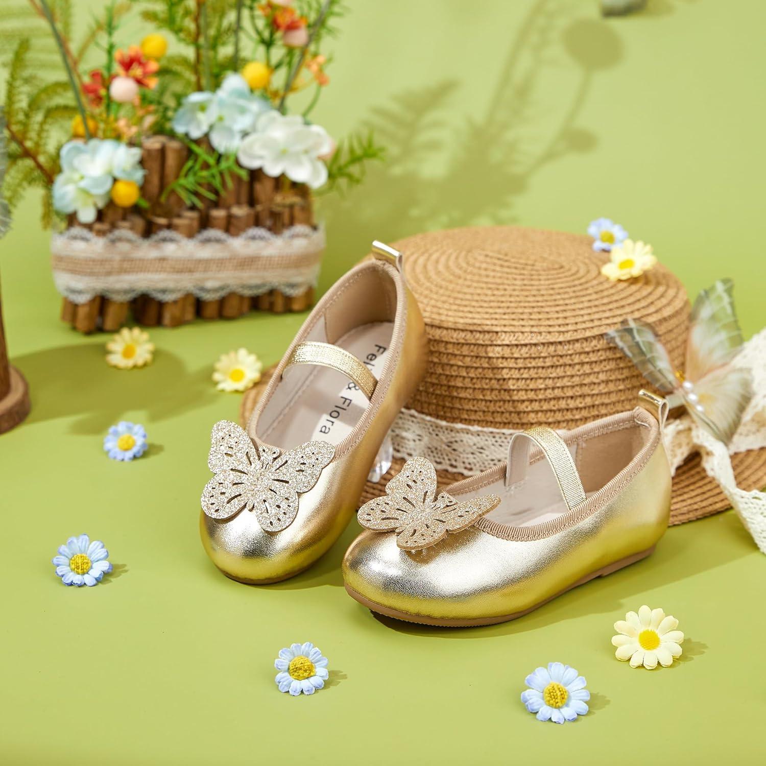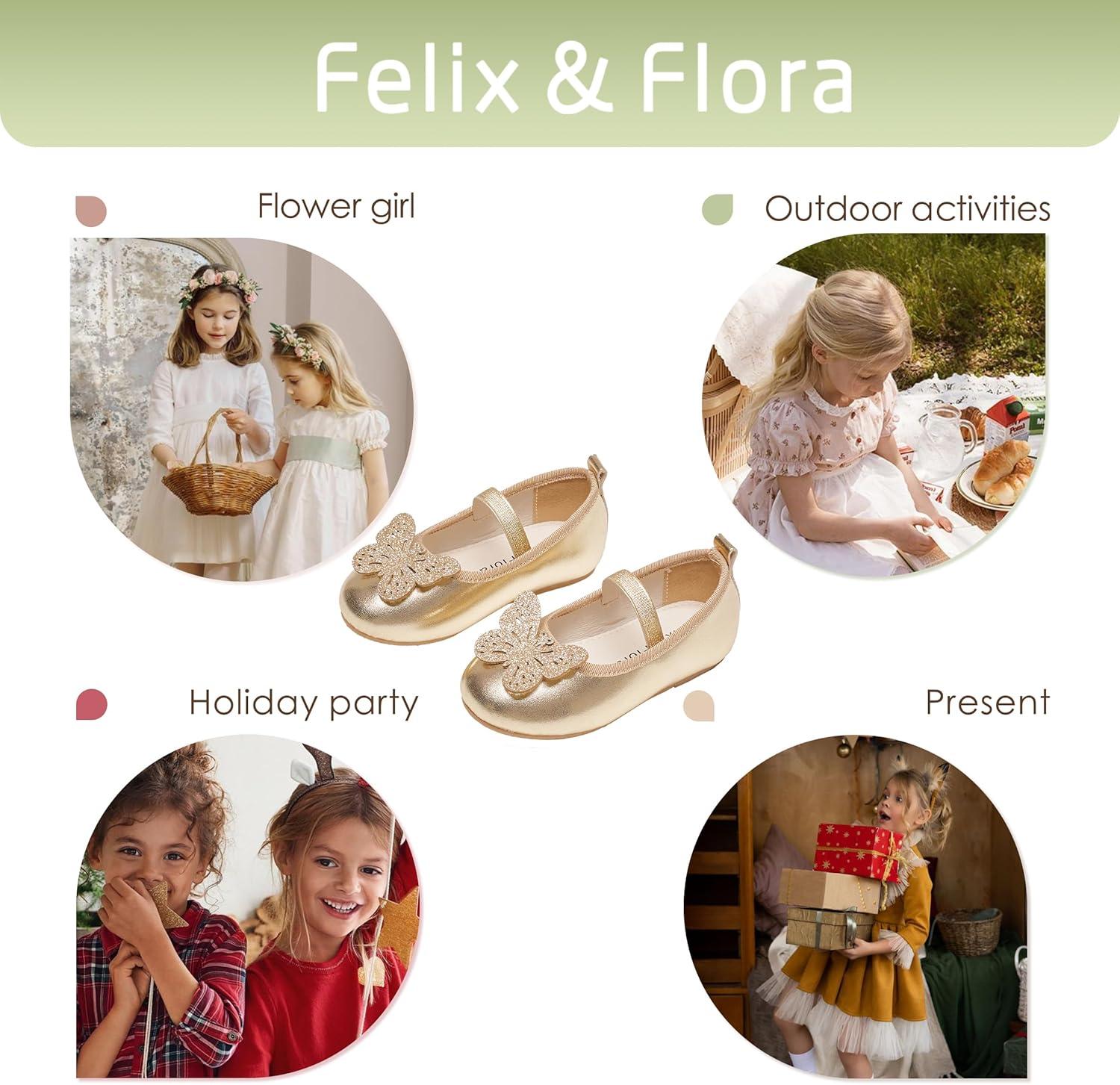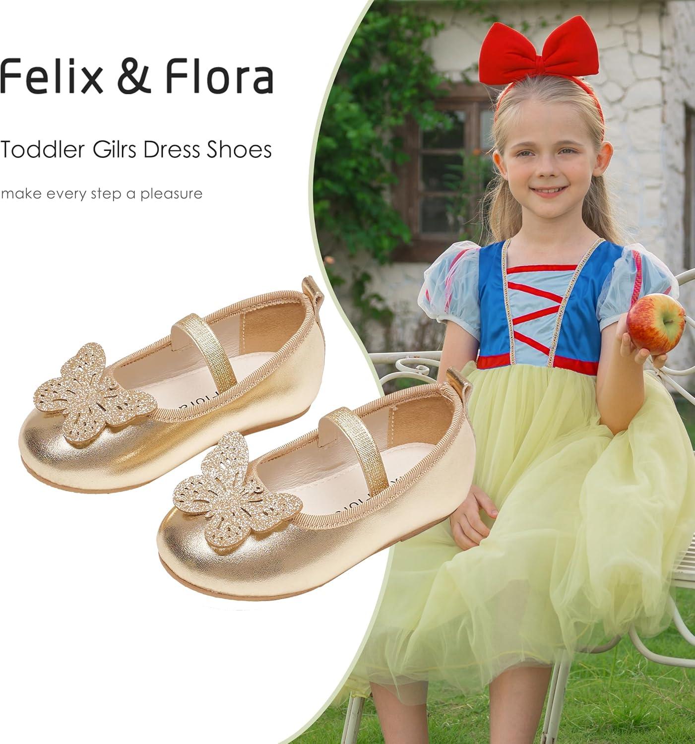 Felix & Flora Toddler Little Girls Dress Shoes – Flower Girls Mary Jane Flats Ballet Shoes Party Wedding(Bf01-gold)