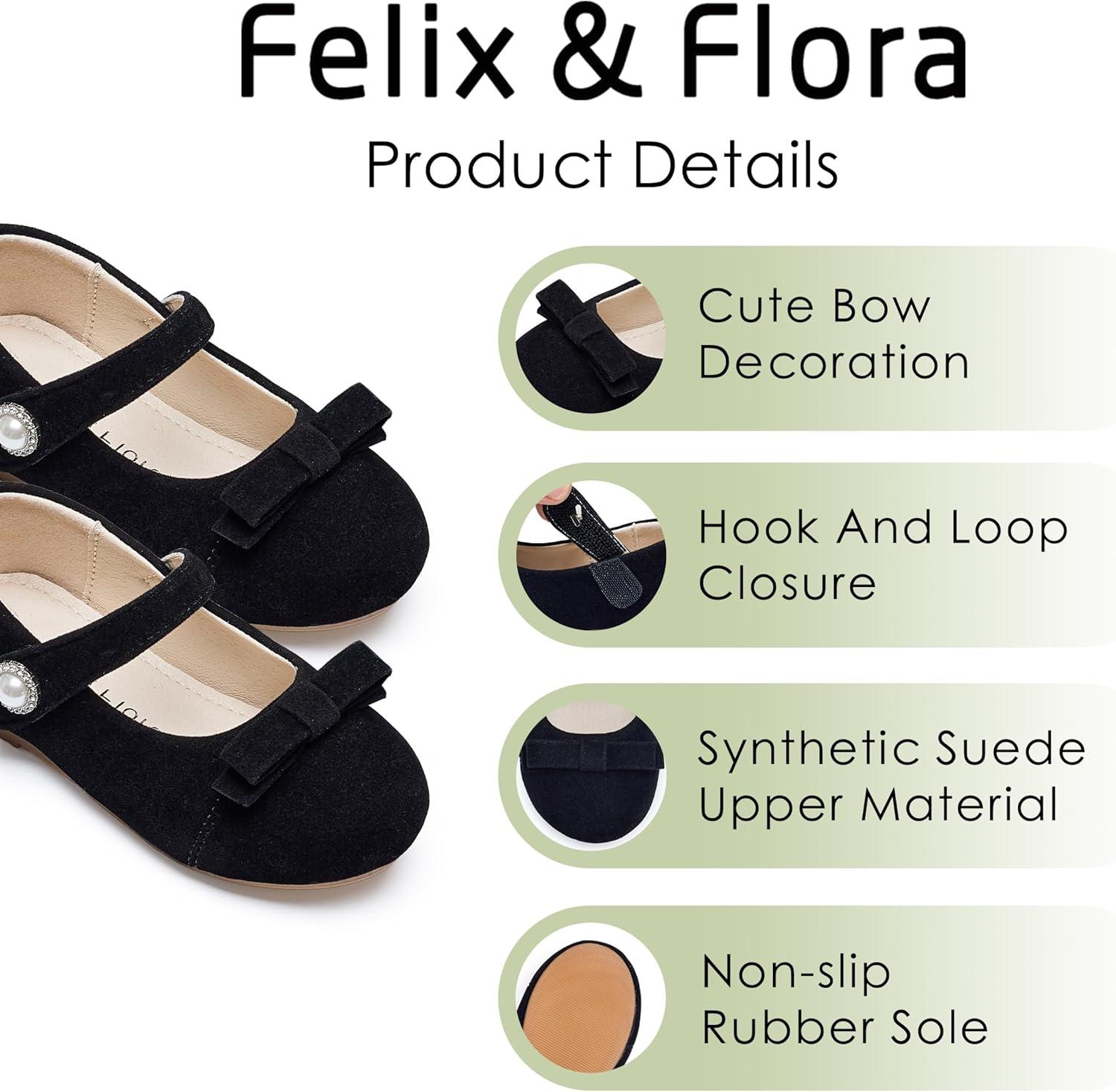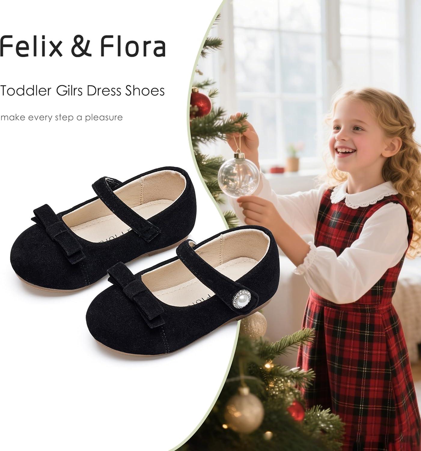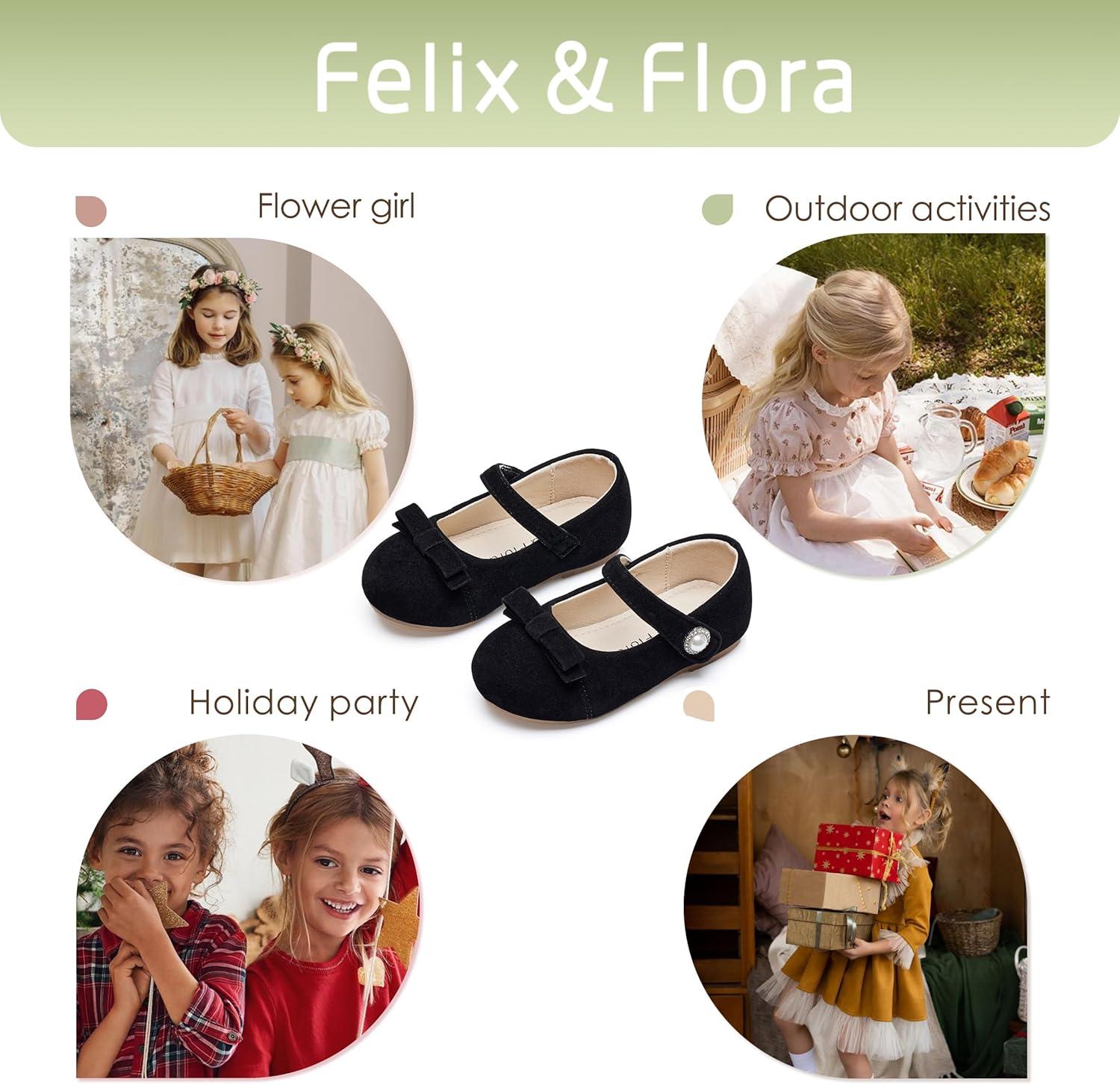 Felix & Flora Toddler Little Girls Dress Shoes – Flower Girls Mary Jane Flats Ballet Shoes Party Wedding(Bf21-black)