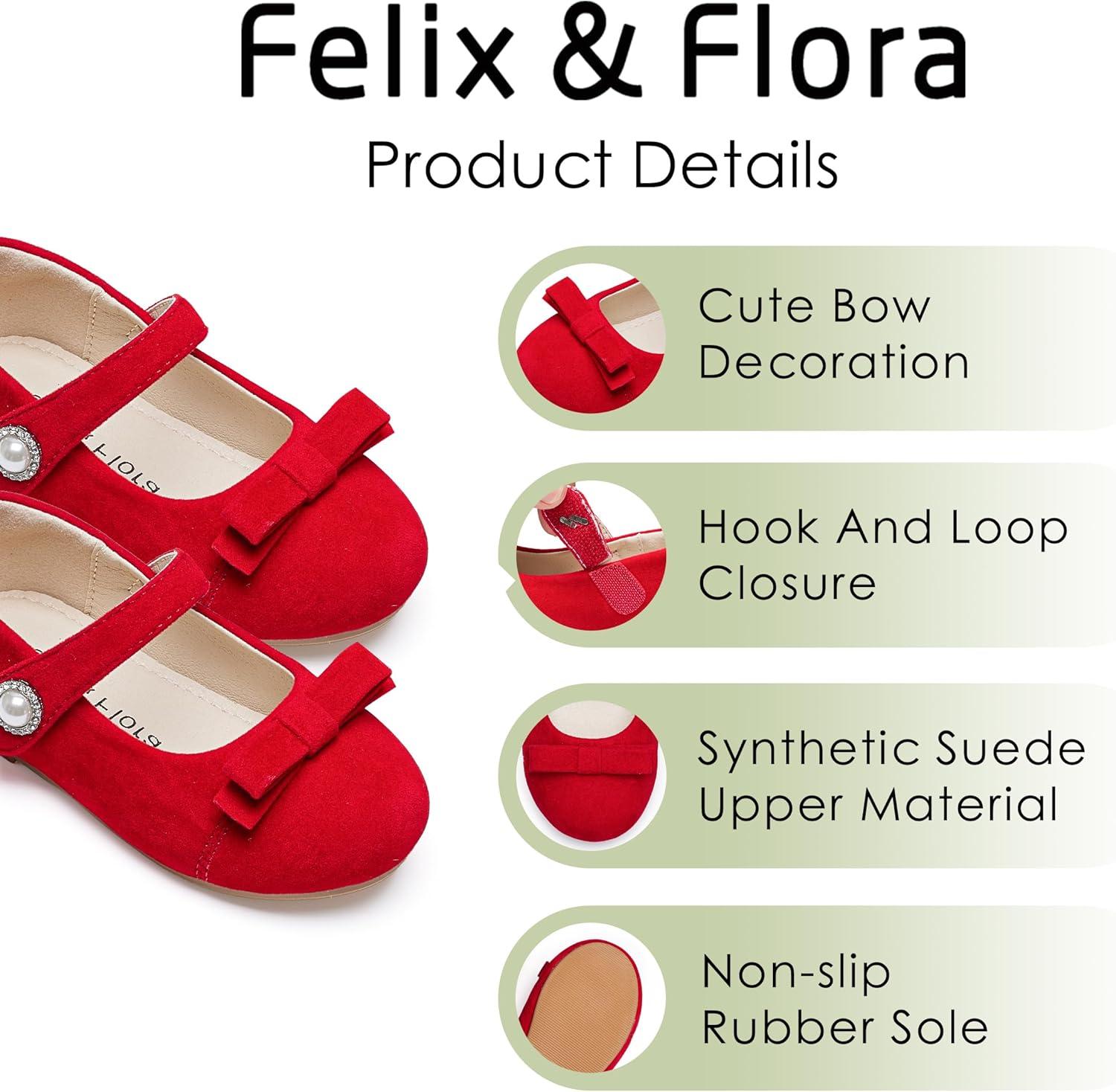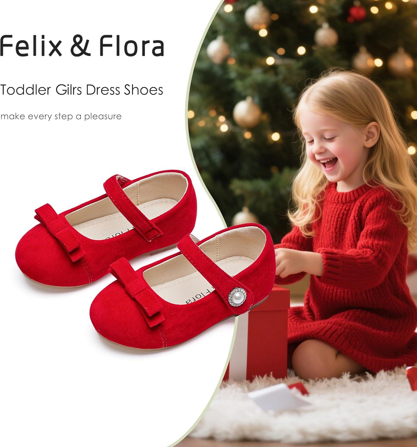 Felix & Flora Toddler Little Girls Dress Shoes – Flower Girls Mary Jane Flats Ballet Shoes Party Wedding(Bf21-red)