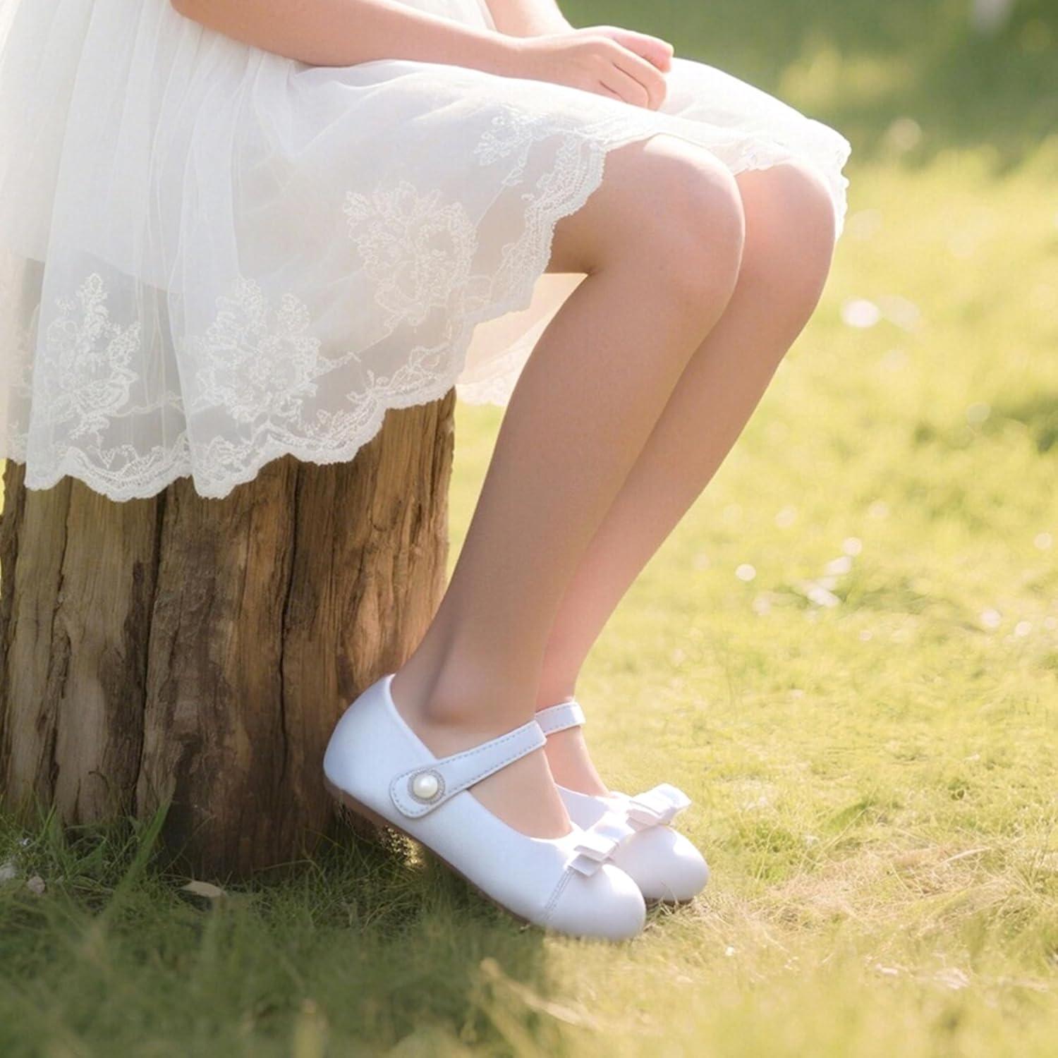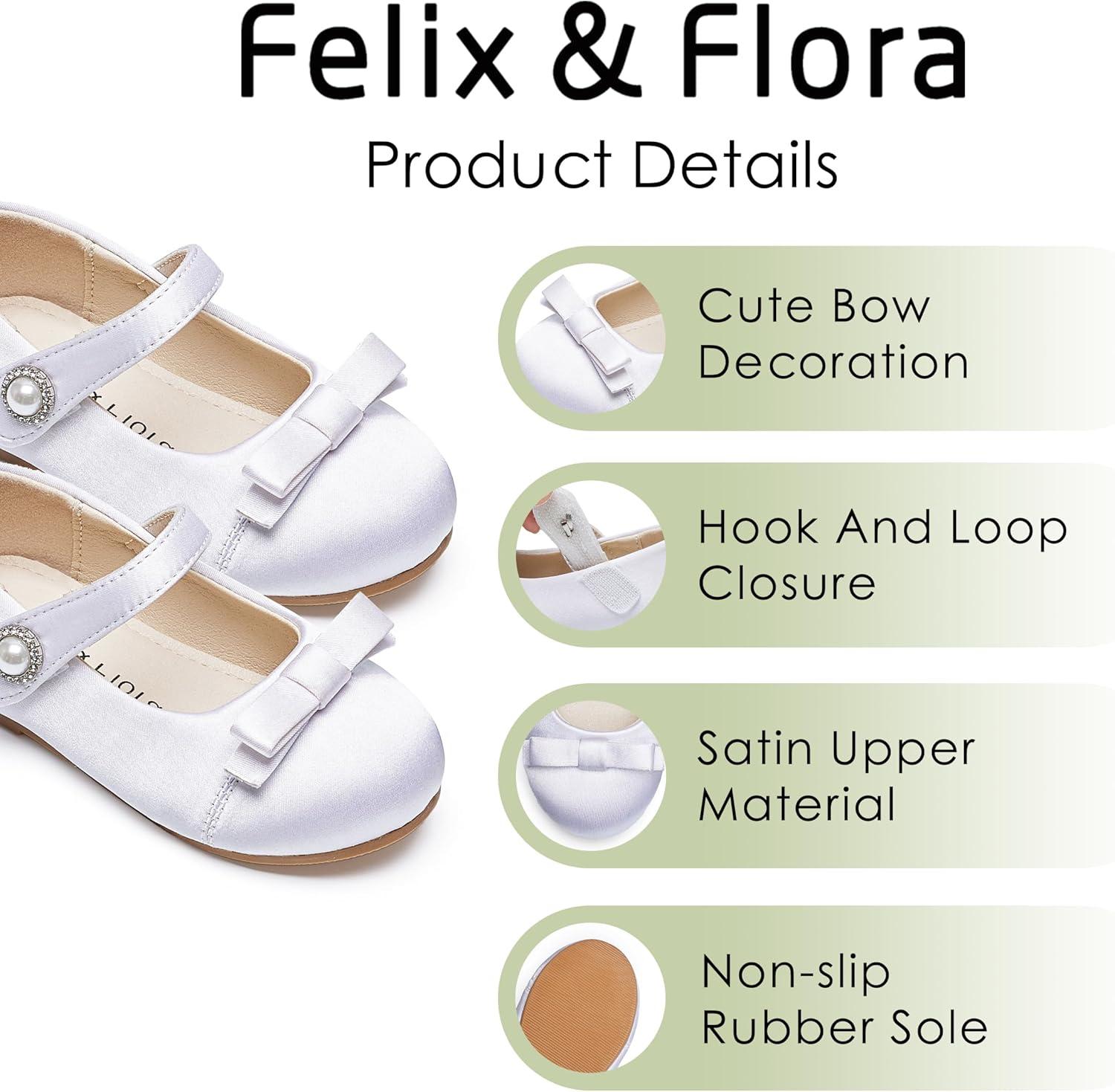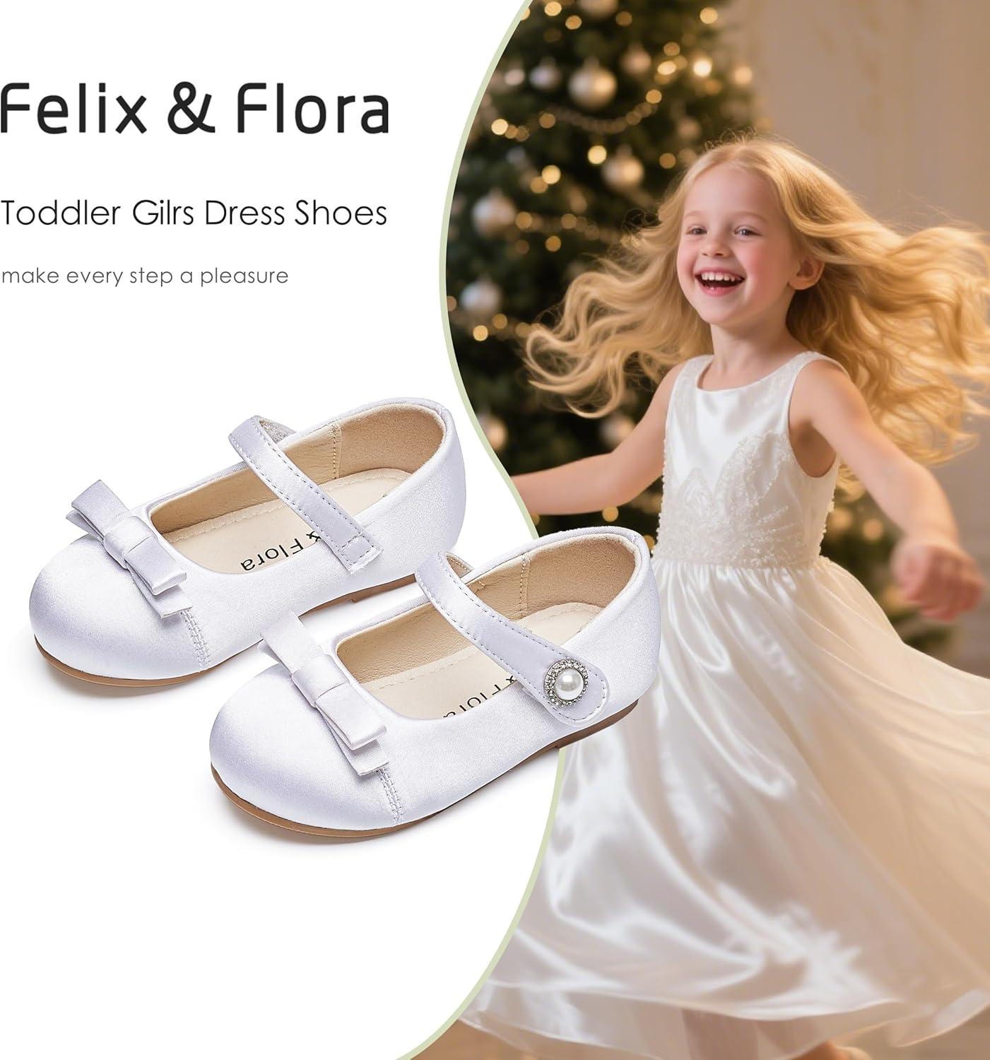 Felix & Flora Toddler Little Girls Dress Shoes – Flower Girls Mary Jane Flats Ballet Shoes Party Wedding(Bf21-s White)