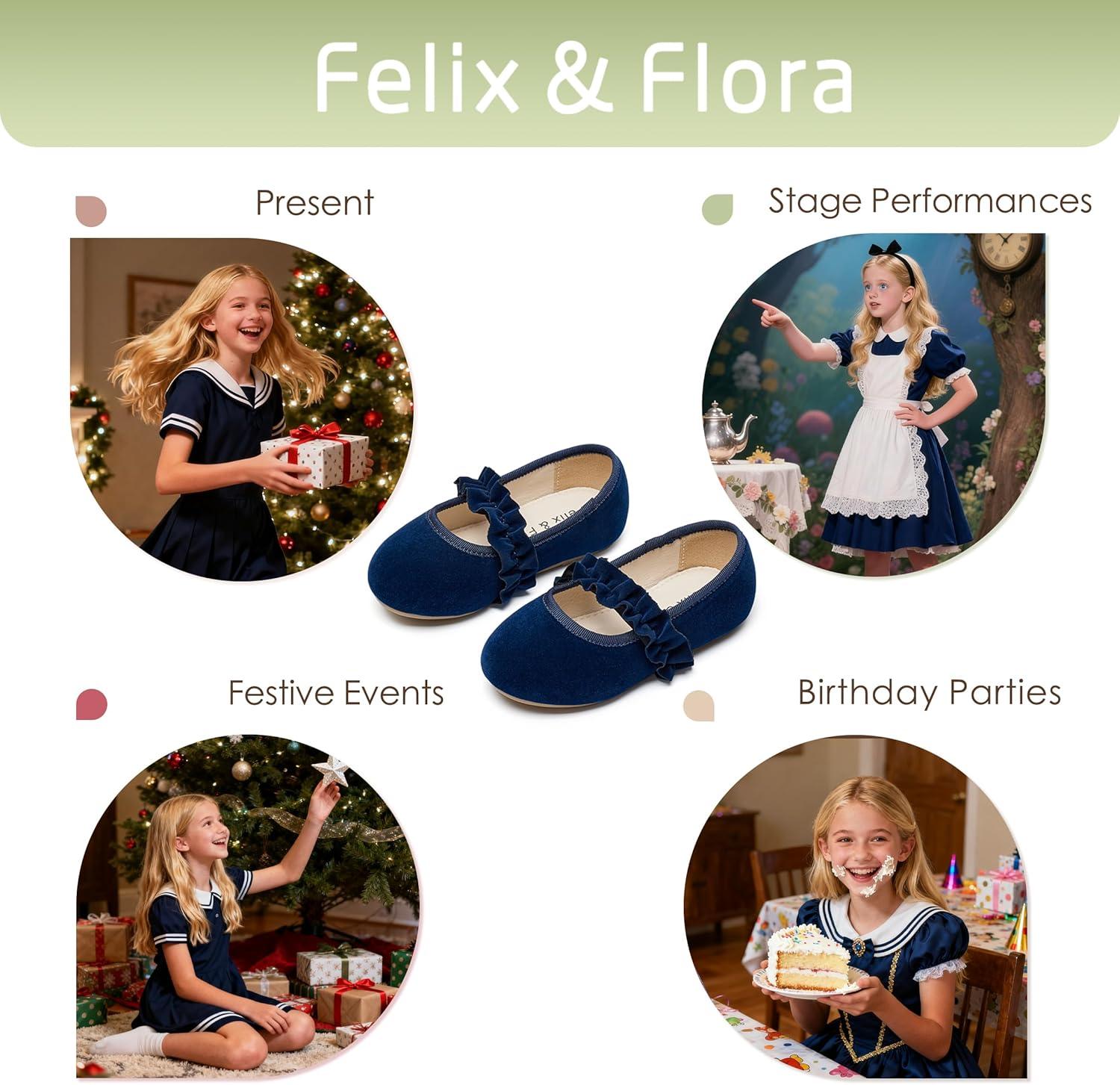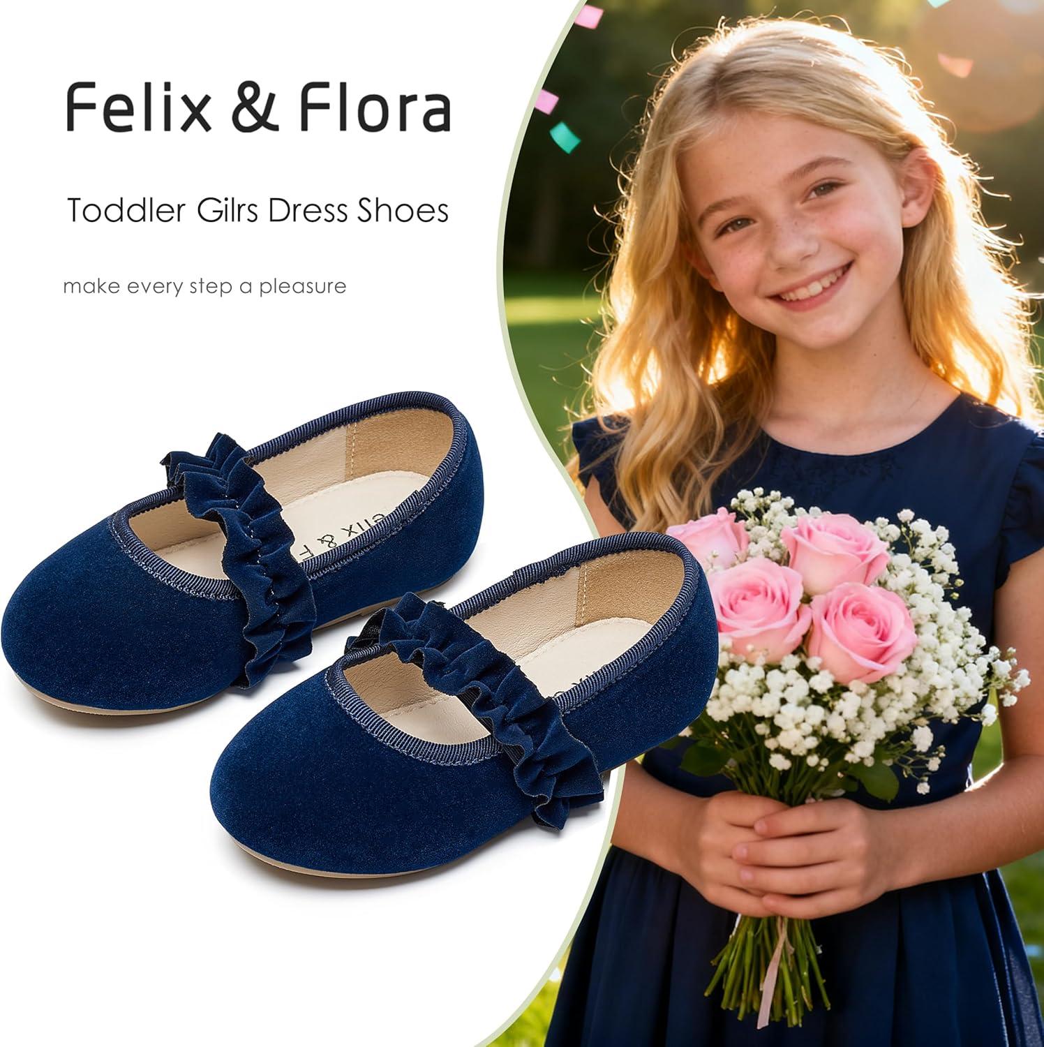 Felix & Flora Toddler Little Girls Dress Shoes – Flower Girls Mary Jane Flats Ballet Shoes Party Wedding(Bf22-navy Blue)