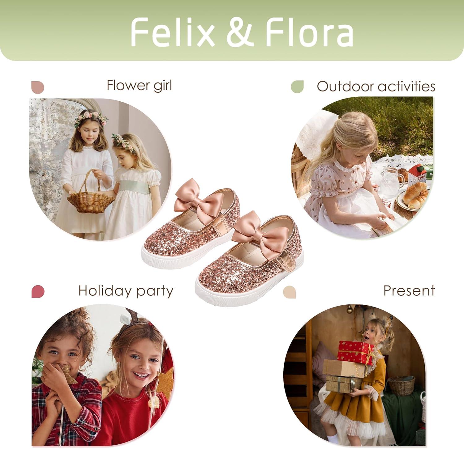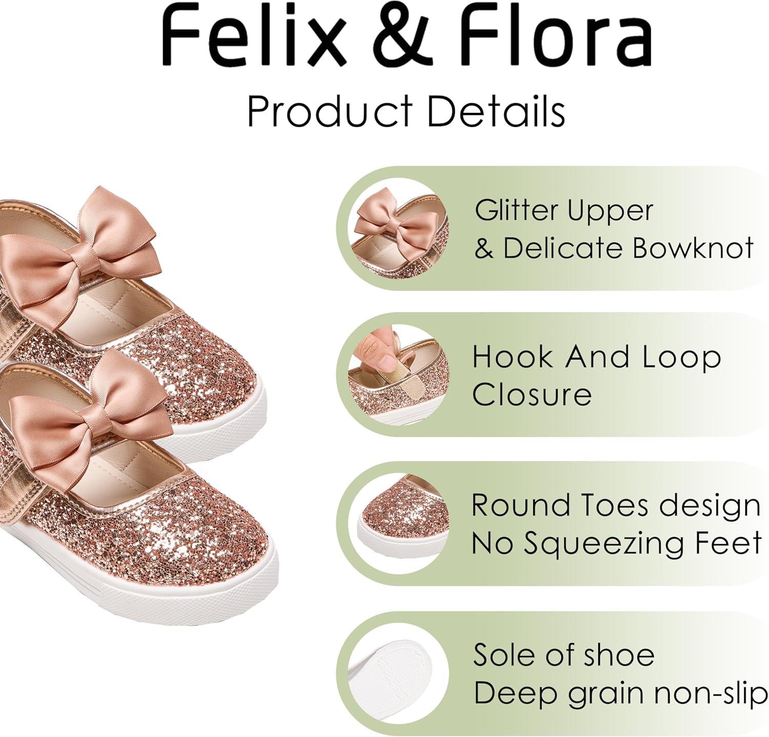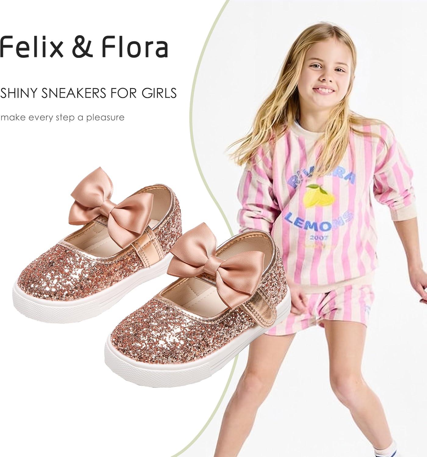 Felix & Flora Toddler/Little Kid Girls Running Shoes Glitter Sneakers Princess Fashion Casual Sports Shoes(Bs822-champagne Pink)