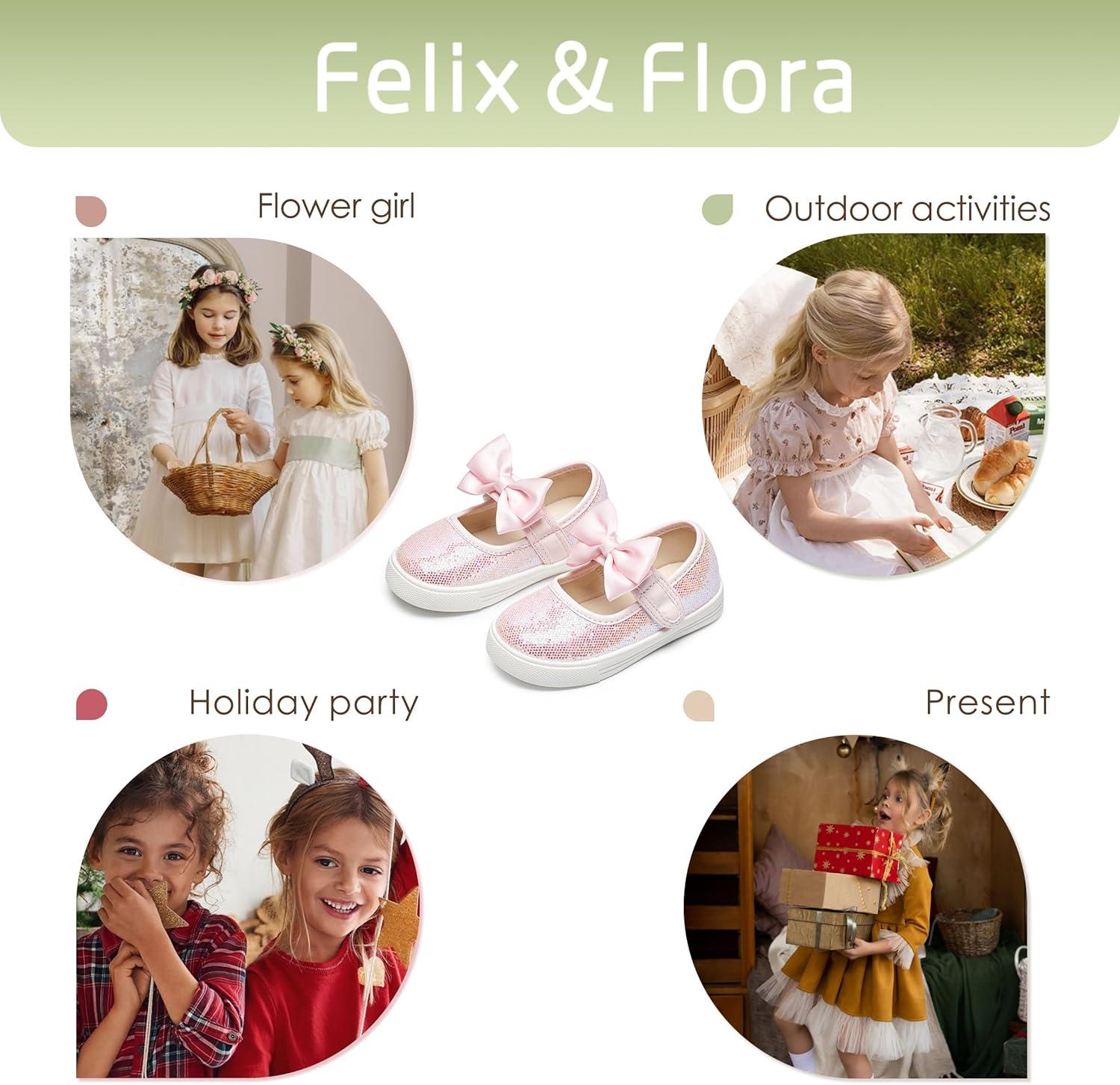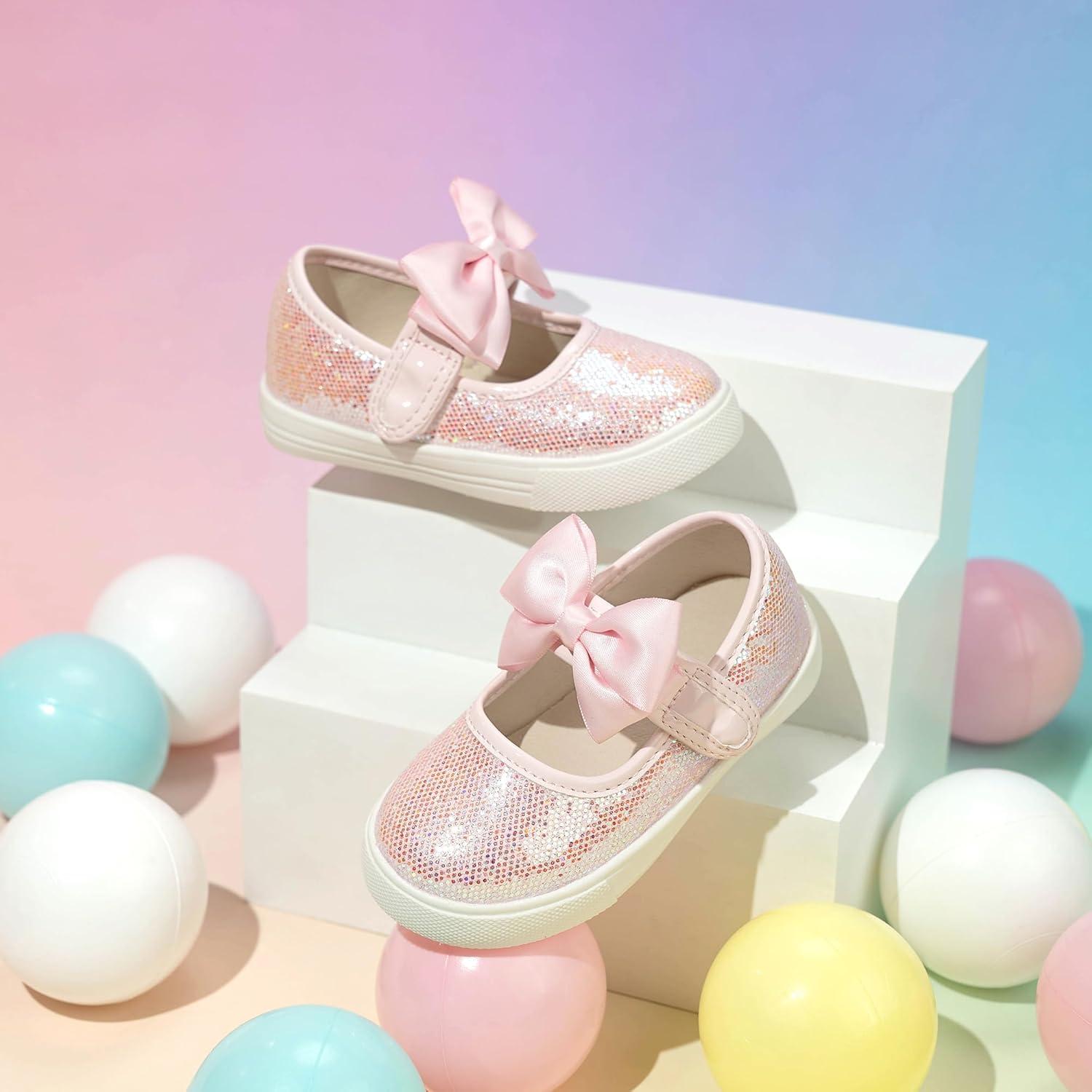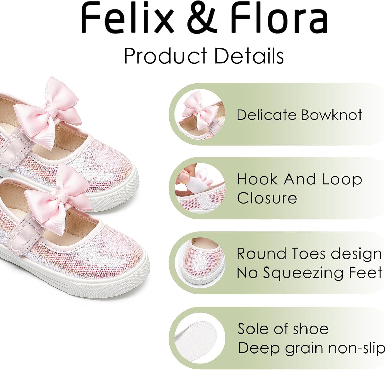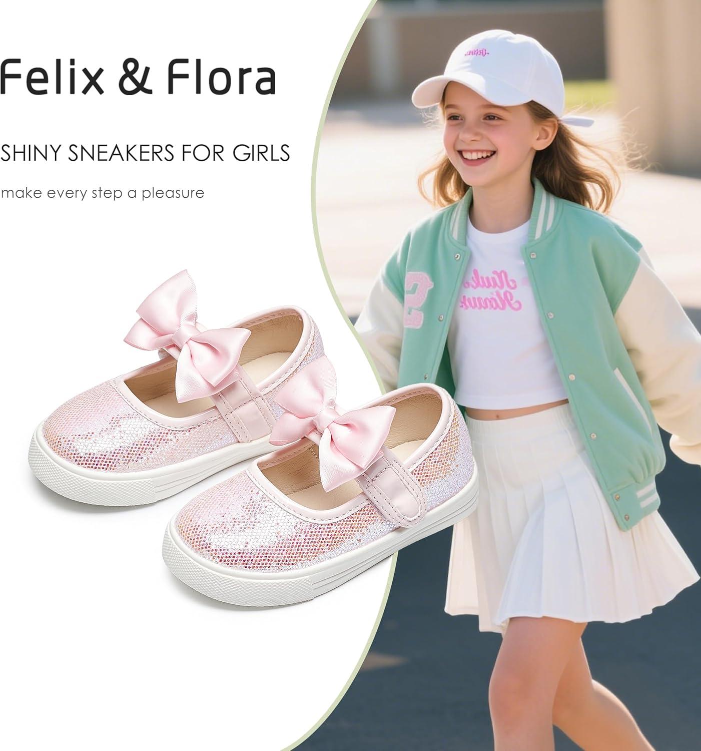 Felix & Flora Toddler/Little Kid Girls Running Shoes Glitter Sneakers Princess Fashion Casual Sports Shoes(Bs822-pink)