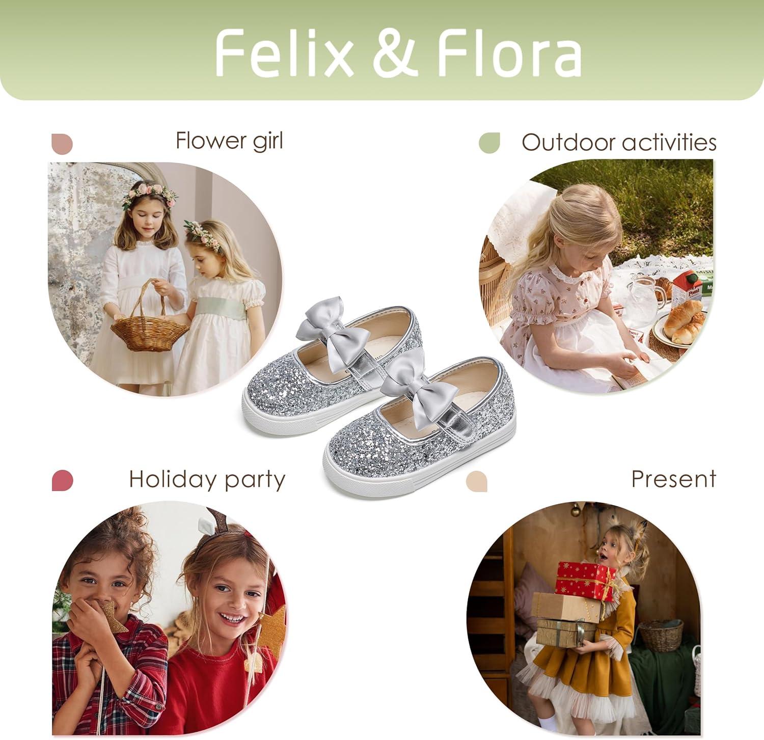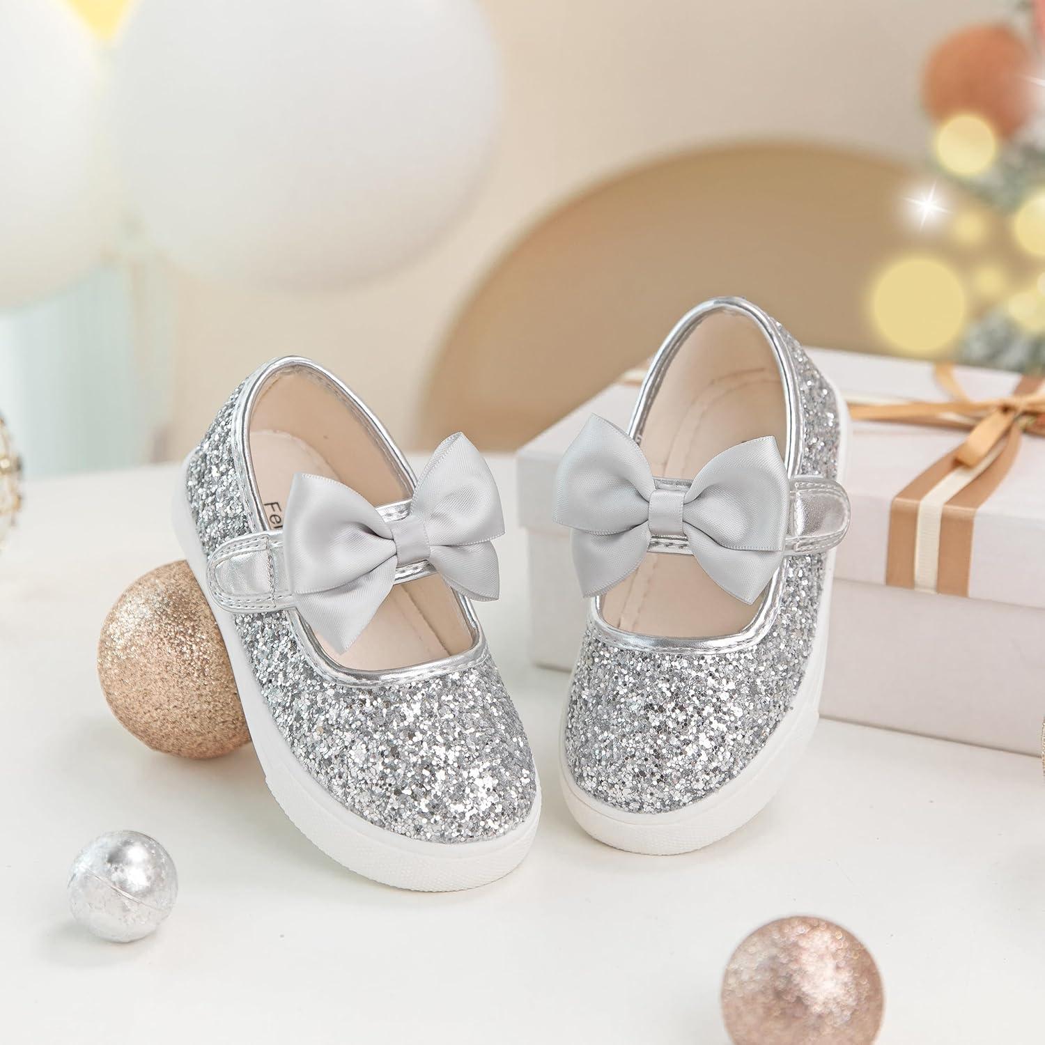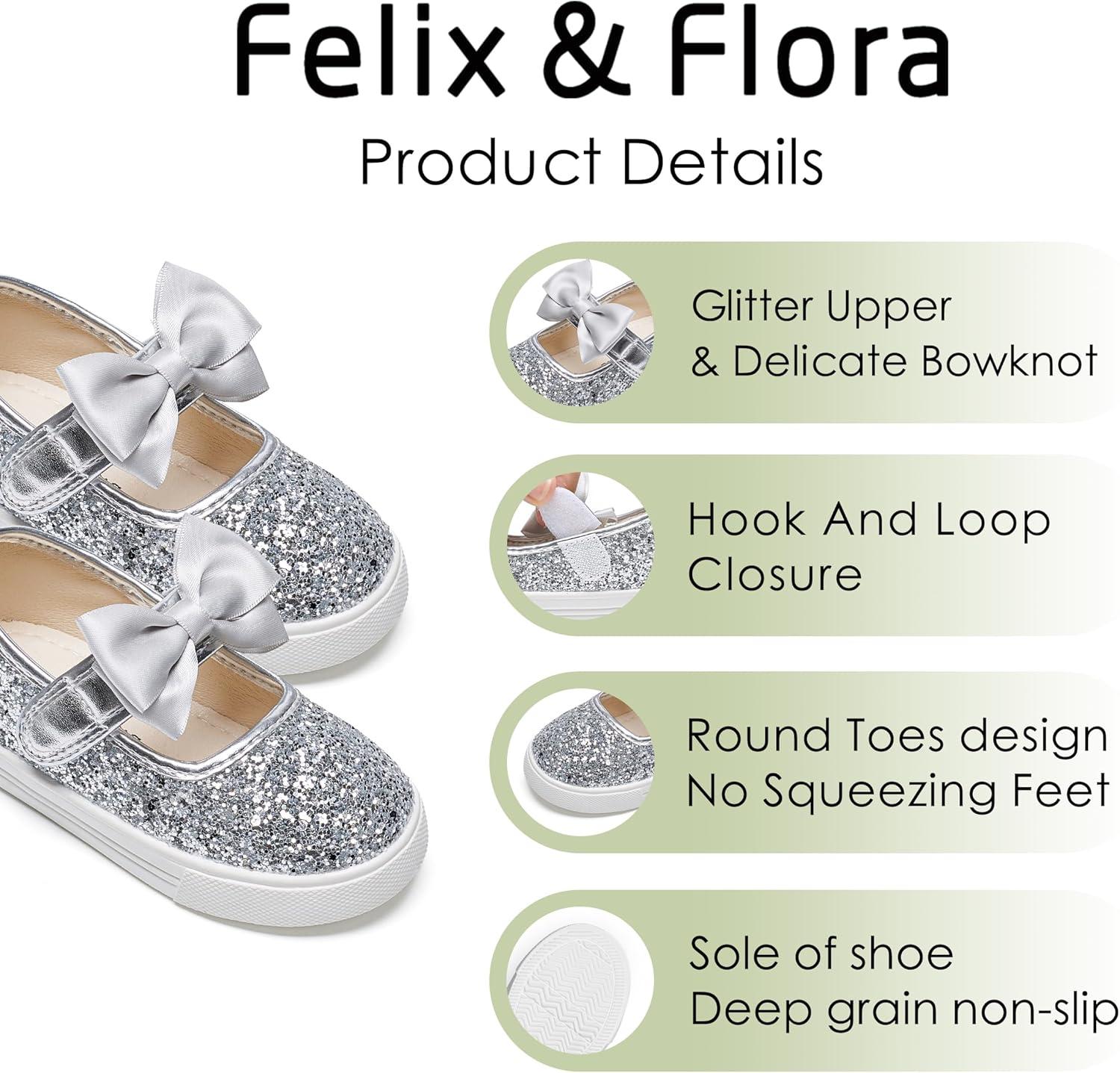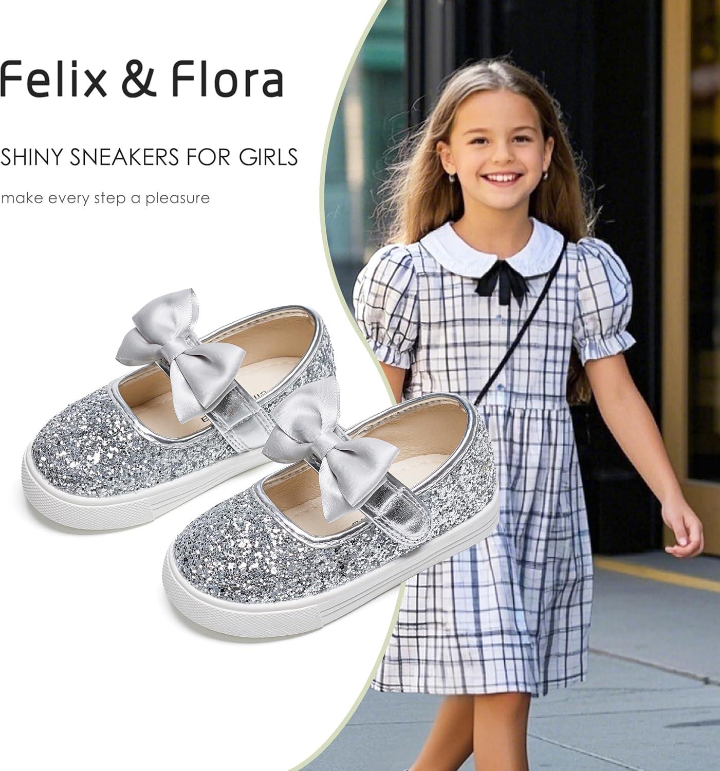Felix & Flora Toddler/Little Kid Girls Running Shoes Glitter Sneakers Princess Fashion Casual Sports Shoes(Bs822-silver)