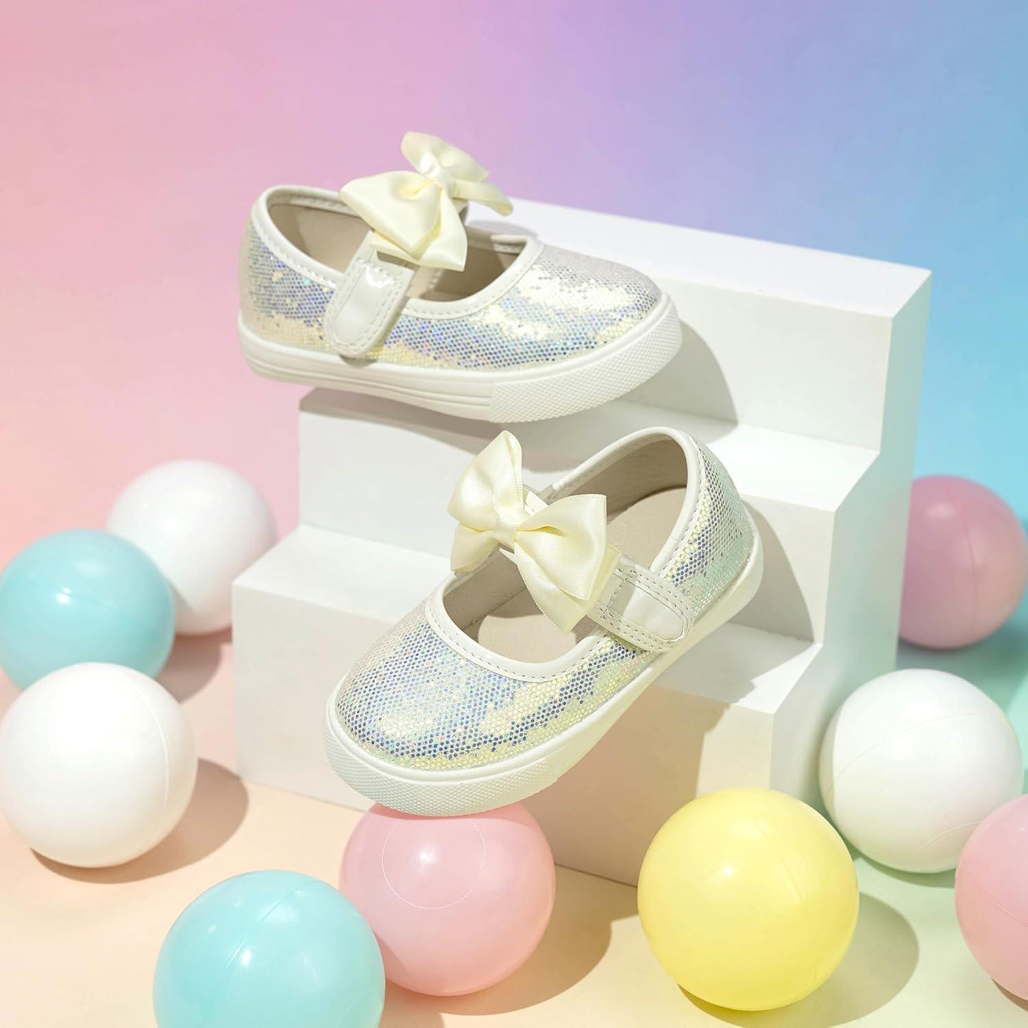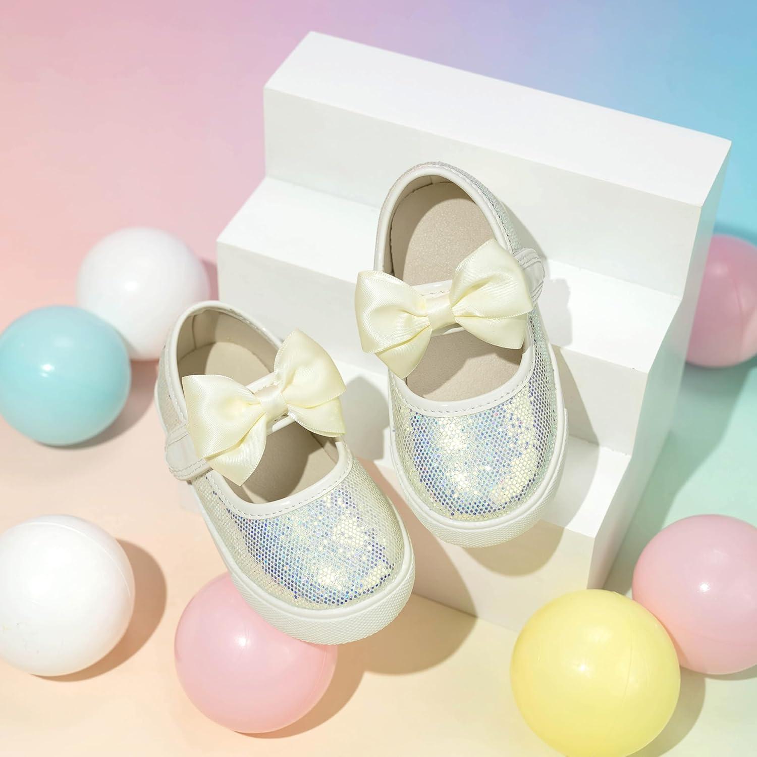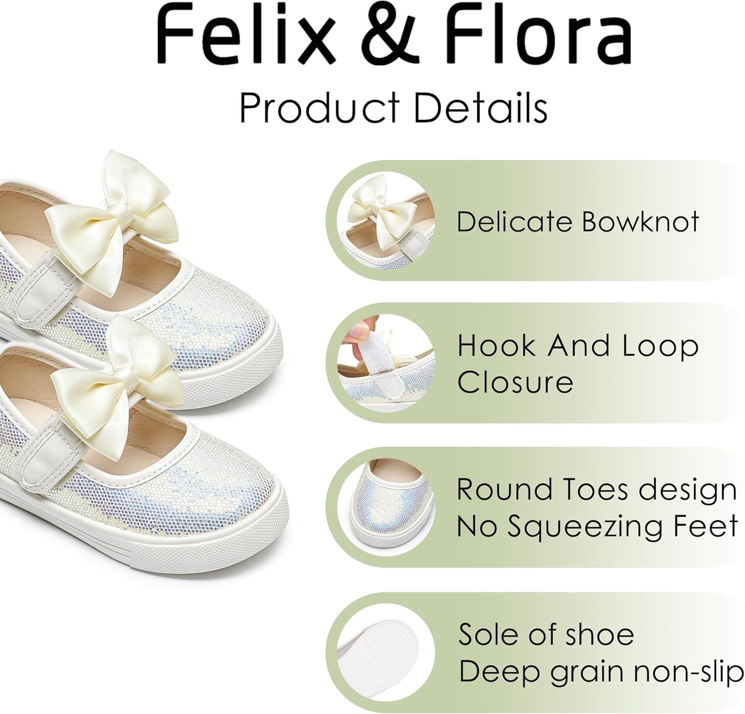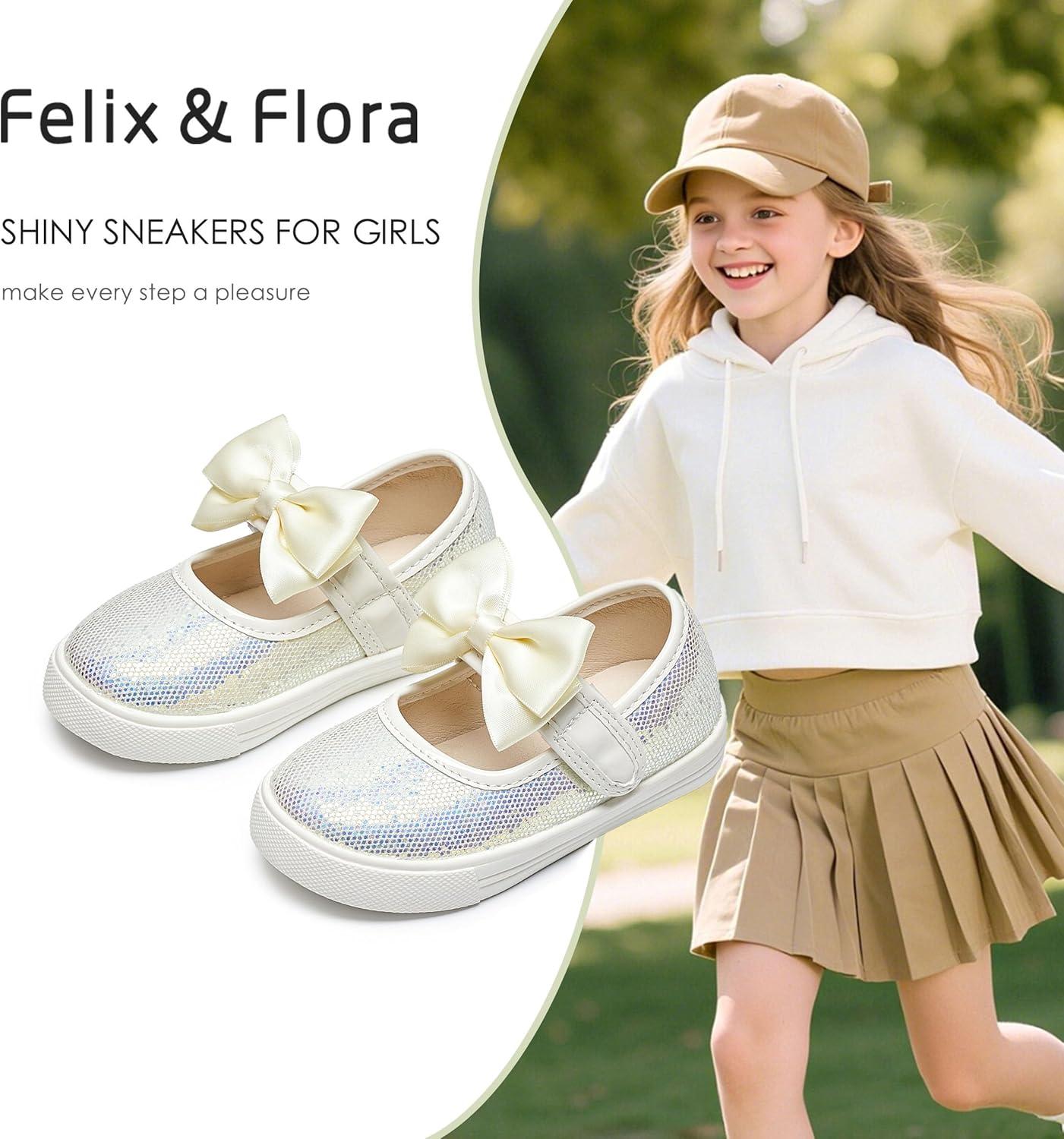 Felix & Flora Toddler/Little Kid Girls Running Shoes Glitter Sneakers Princess Fashion Casual Sports Shoes(Bs822-white)