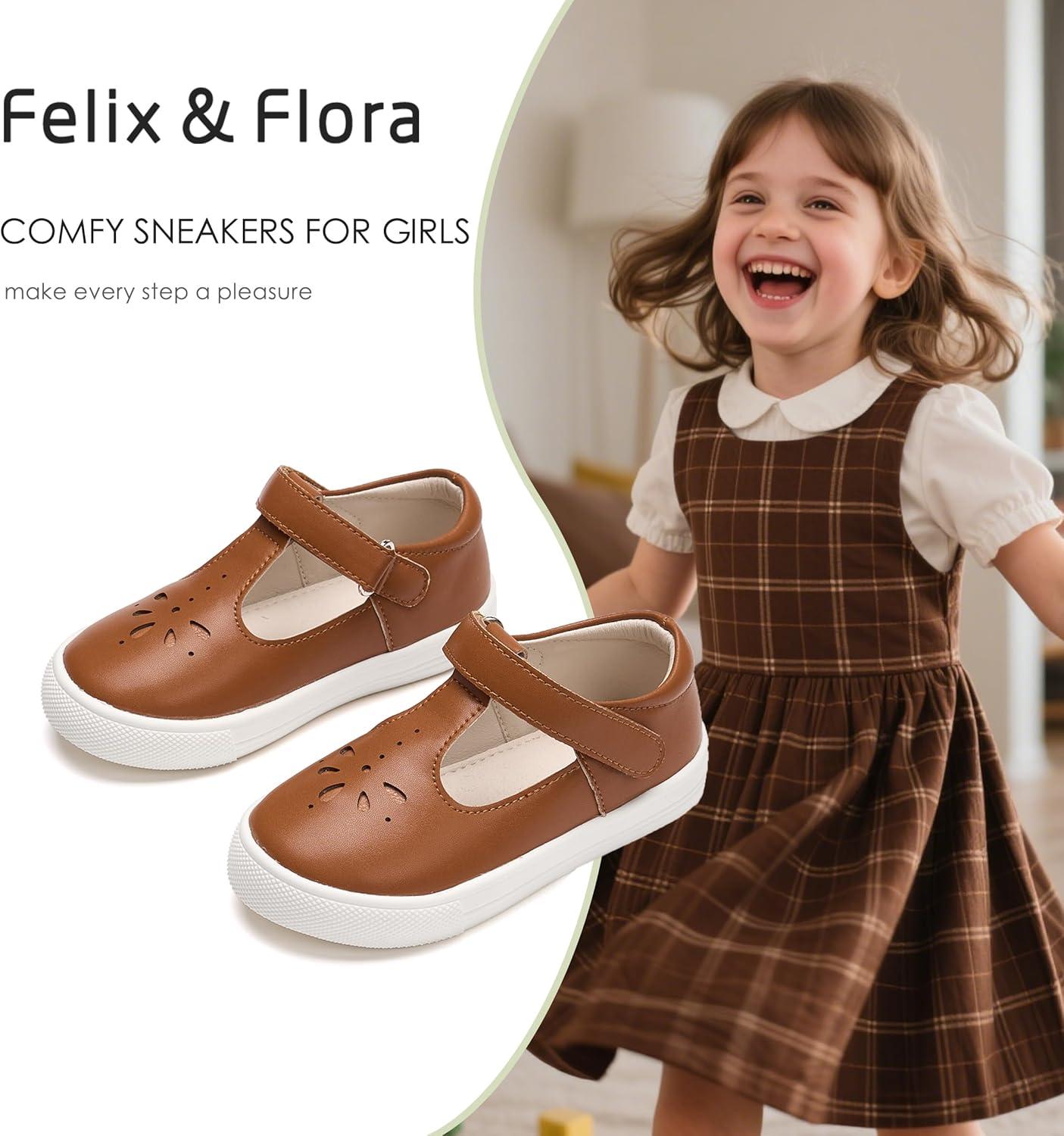 Felix & Flora Toddler/Little Kid Girls Running Shoes Glitter Sneakers Princess Fashion Casual Sports Shoes(Bs829-brown)