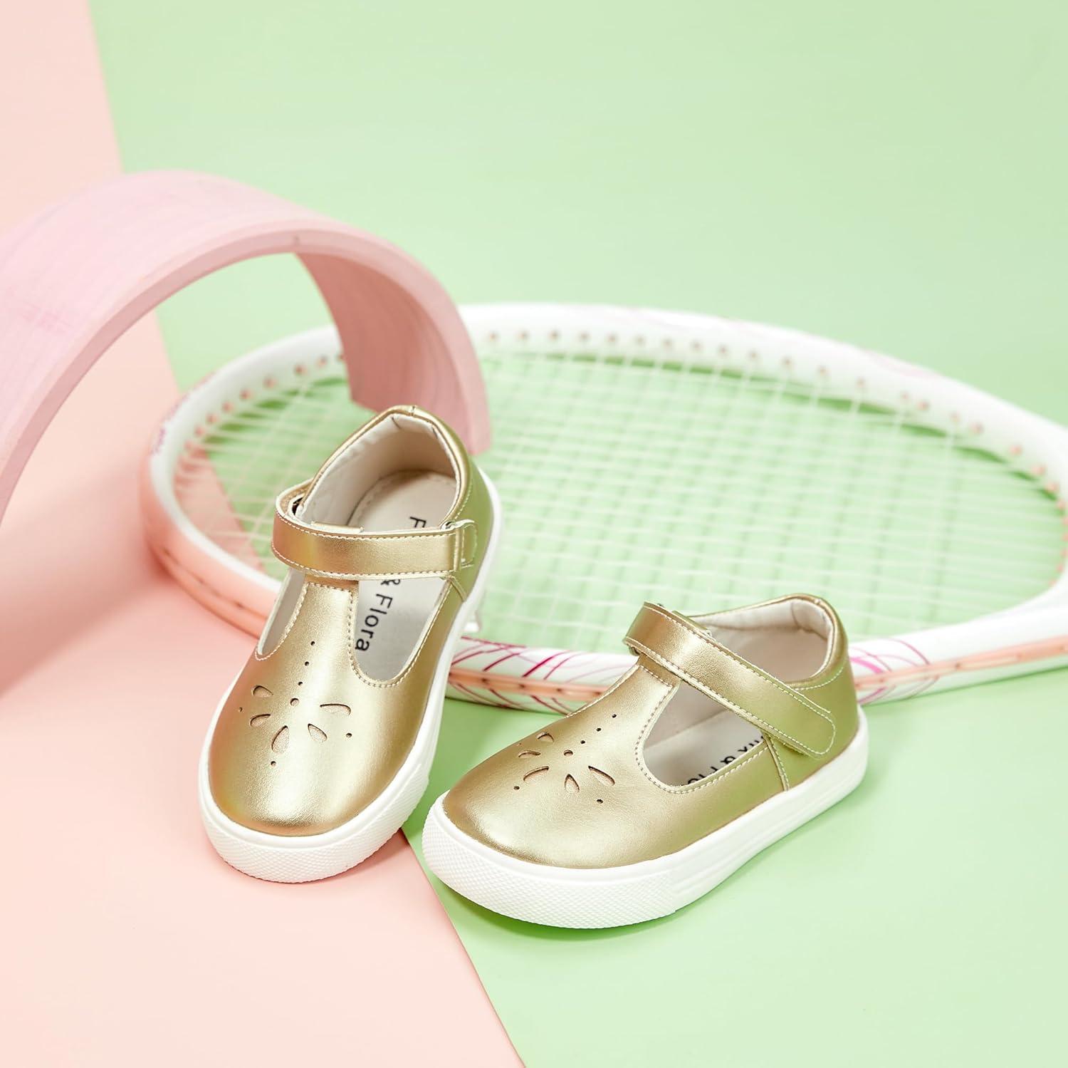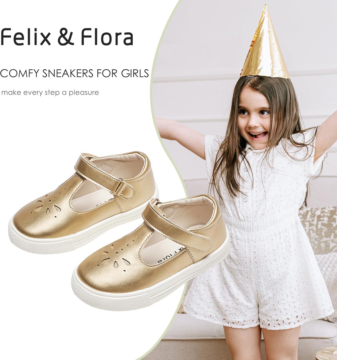 Felix & Flora Toddler/Little Kid Girls Running Shoes Glitter Sneakers Princess Fashion Casual Sports Shoes(Bs829-gold)