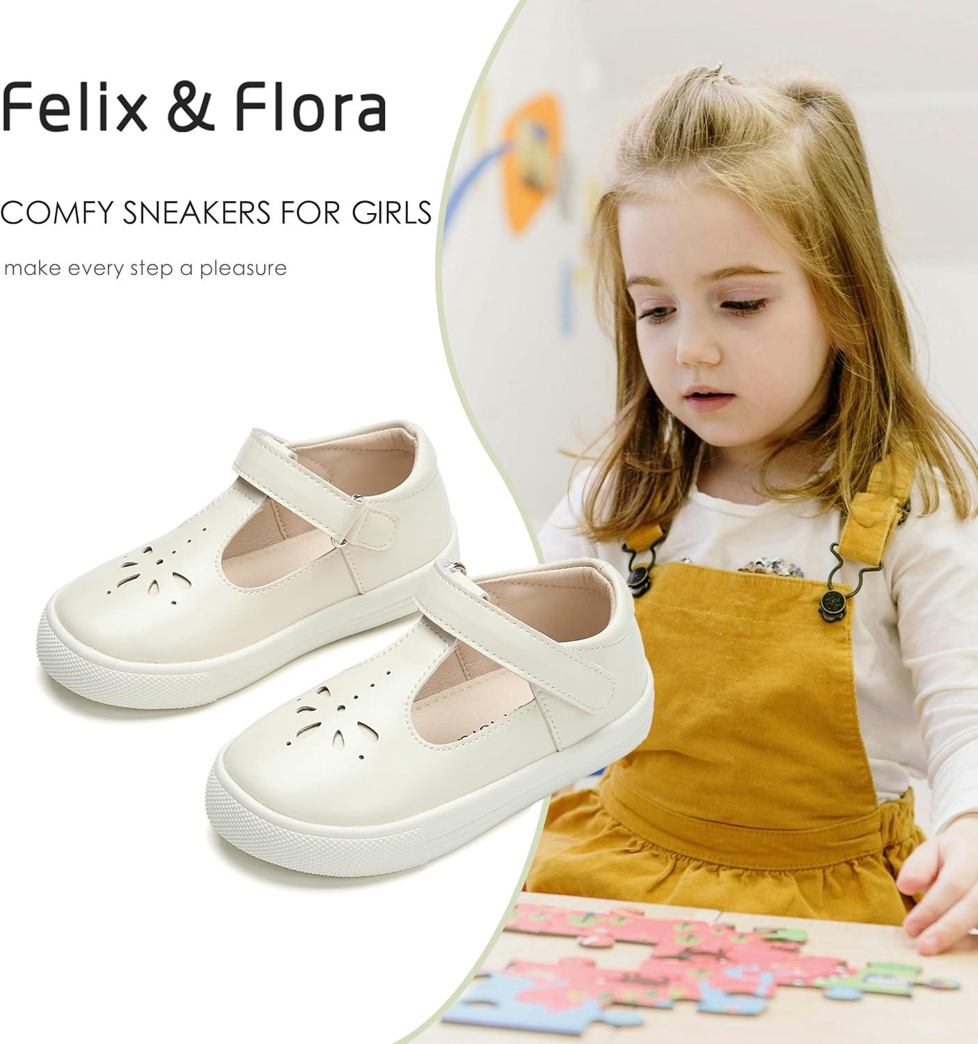 Felix & Flora Toddler/Little Kid Girls Running Shoes Glitter Sneakers Princess Fashion Casual Sports Shoes(Bs829-ivory White)