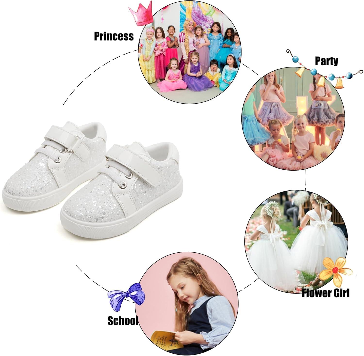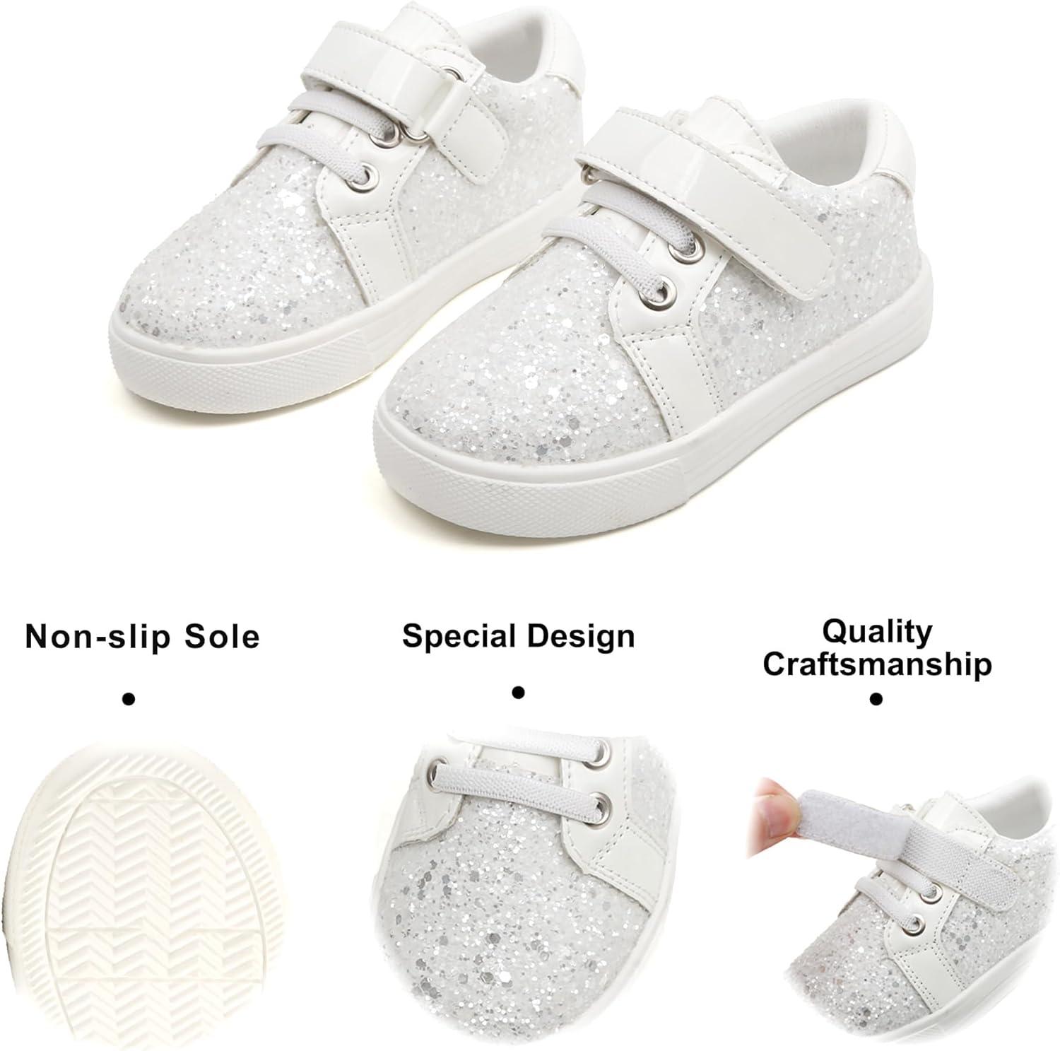 Felix & Flora Toddler/Little Kid Girls Running Shoes Sports Sneakers Princess Casual Glitter Shoes.(Bs815-glitter White)