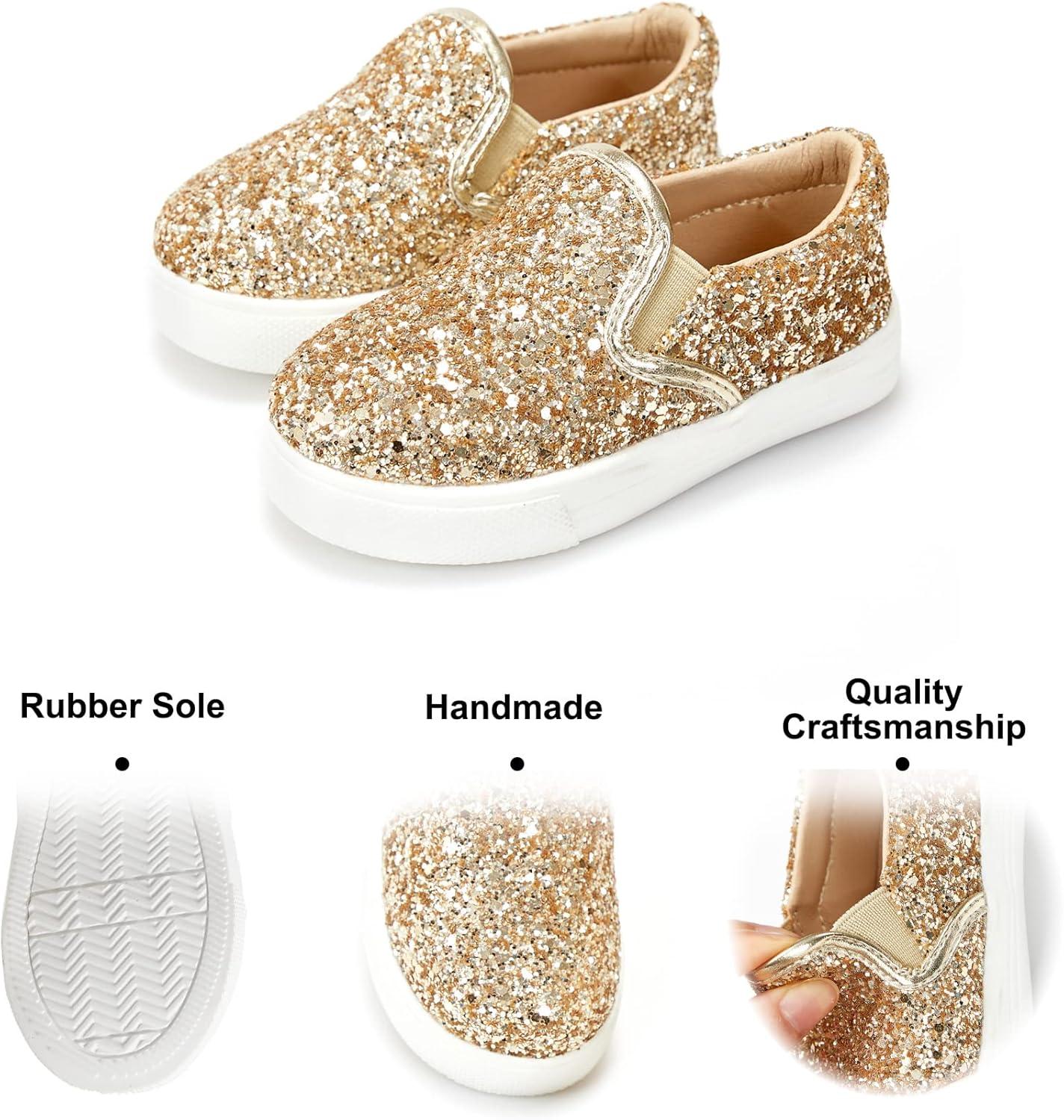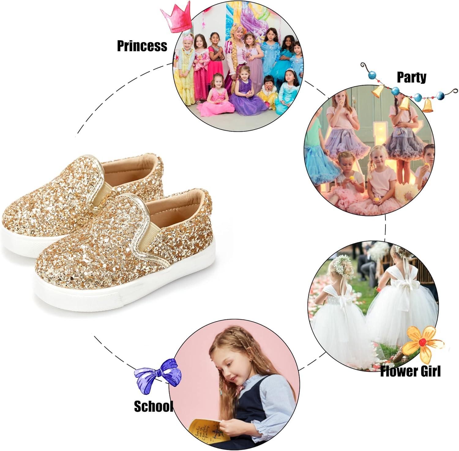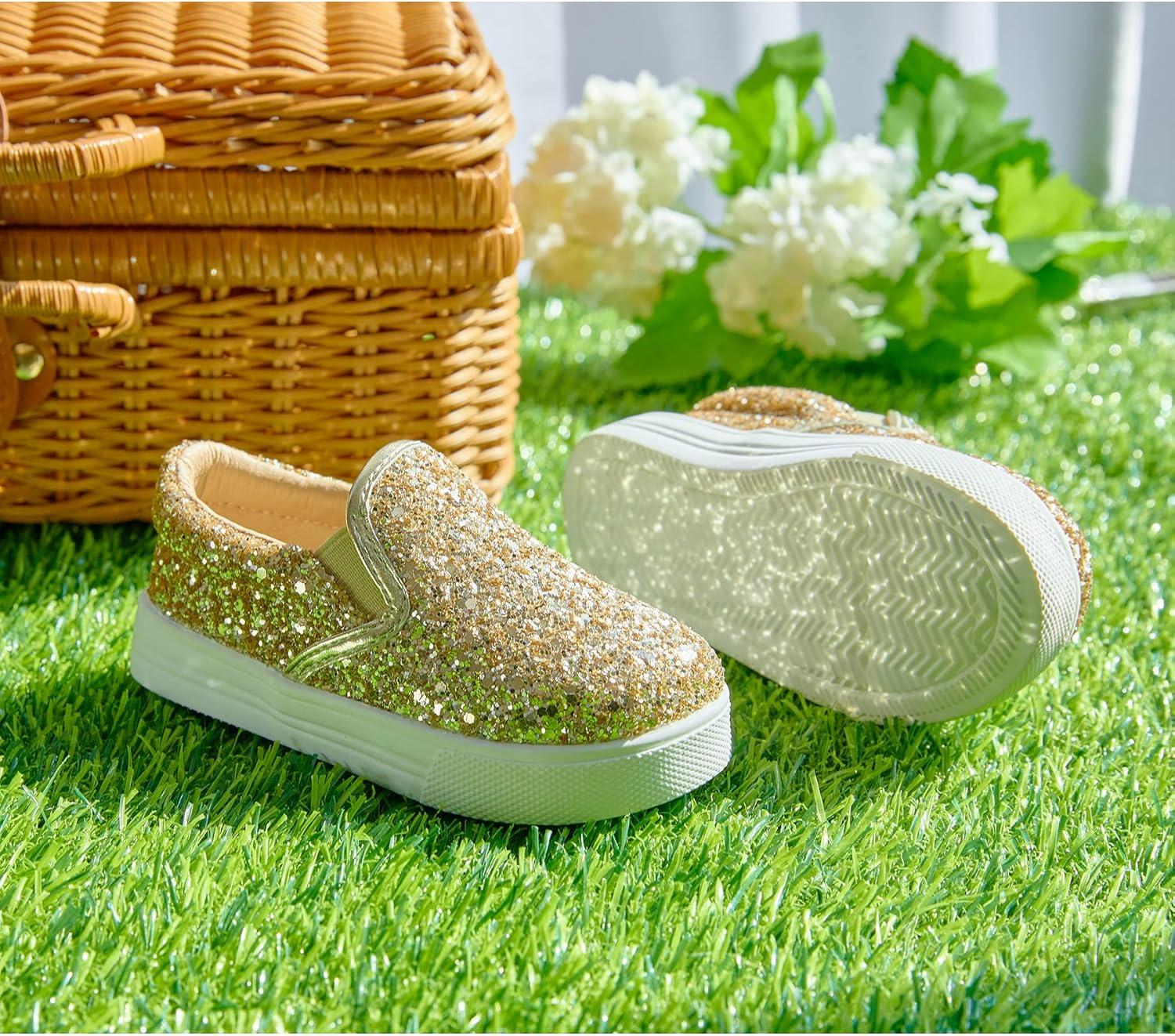 Felix & Flora Toddler/Little Kid Girls Running Shoes Sports Sneakers Princess Casual Glitter Shoes.(Bs818-gold)