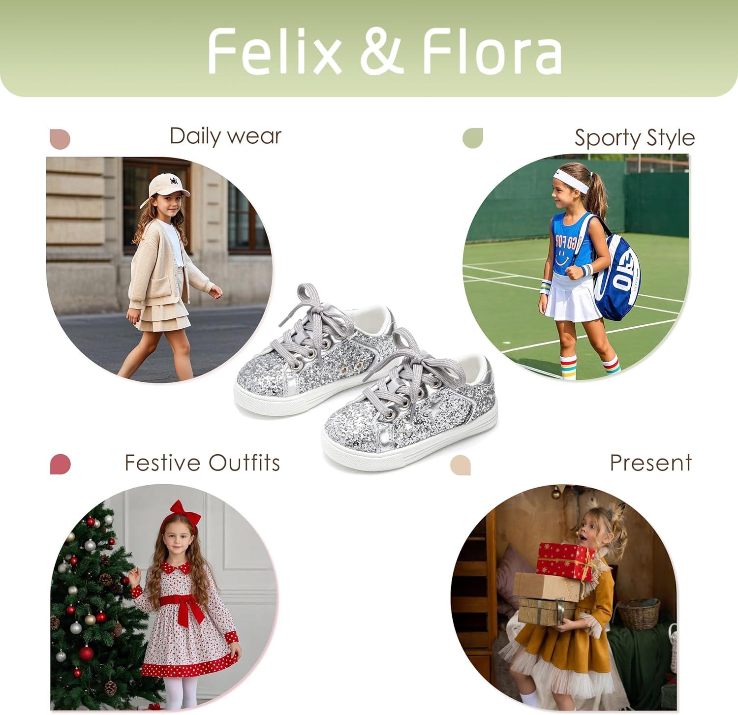 Felix & Flora Toddler/Little Kid Girls Running Shoes Sports Sneakers Princess Casual Glitter Shoes.(Bs819-glitter Silver)