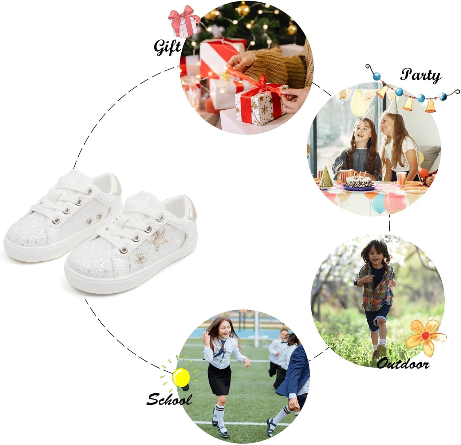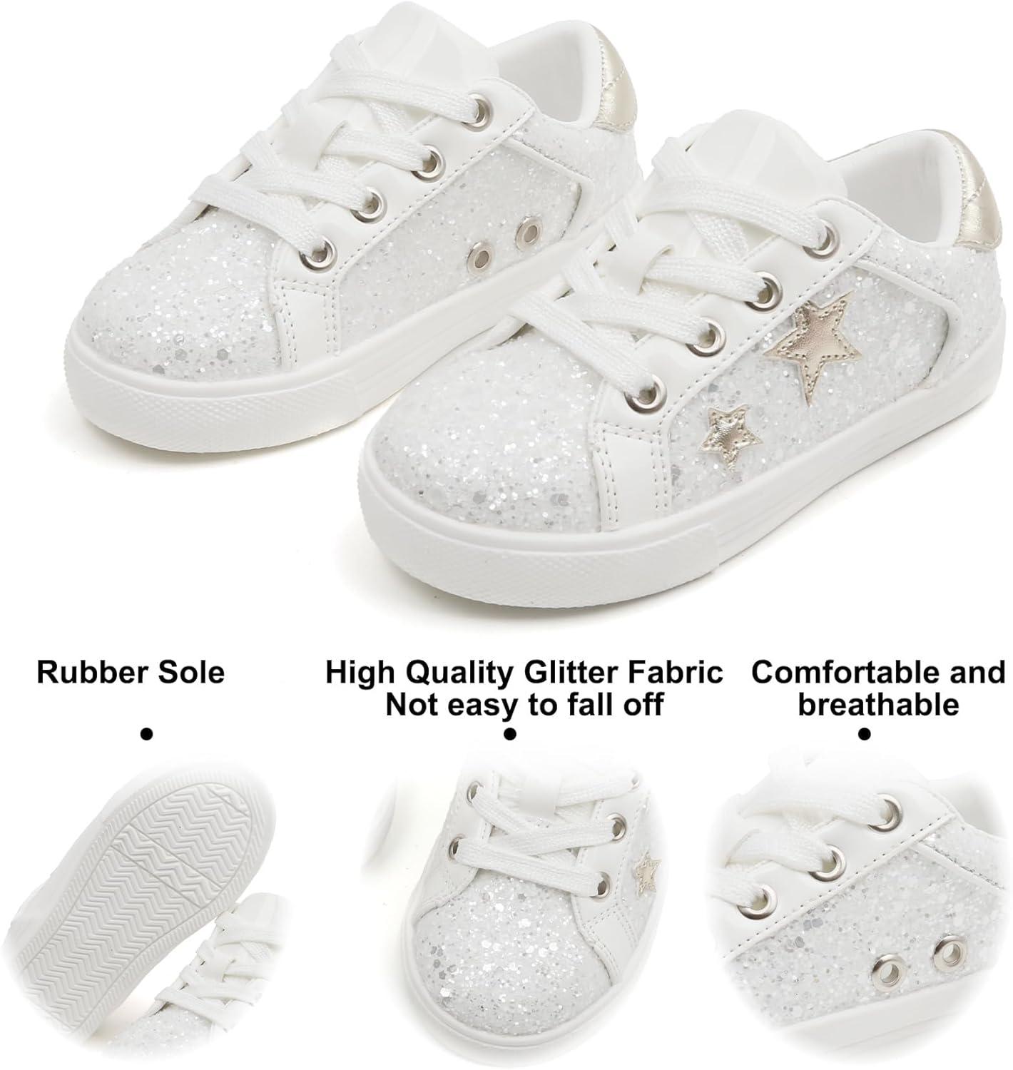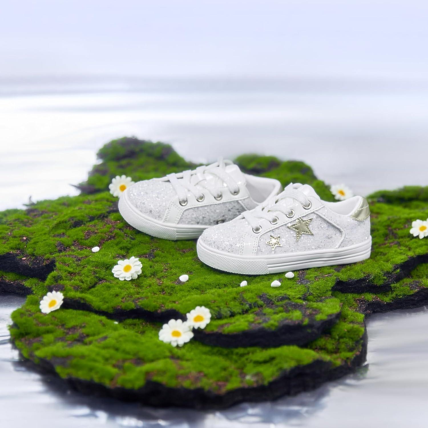Felix & Flora Toddler/Little Kid Girls Running Shoes Sports Sneakers Princess Casual Glitter Shoes.(Bs819-glitter White)