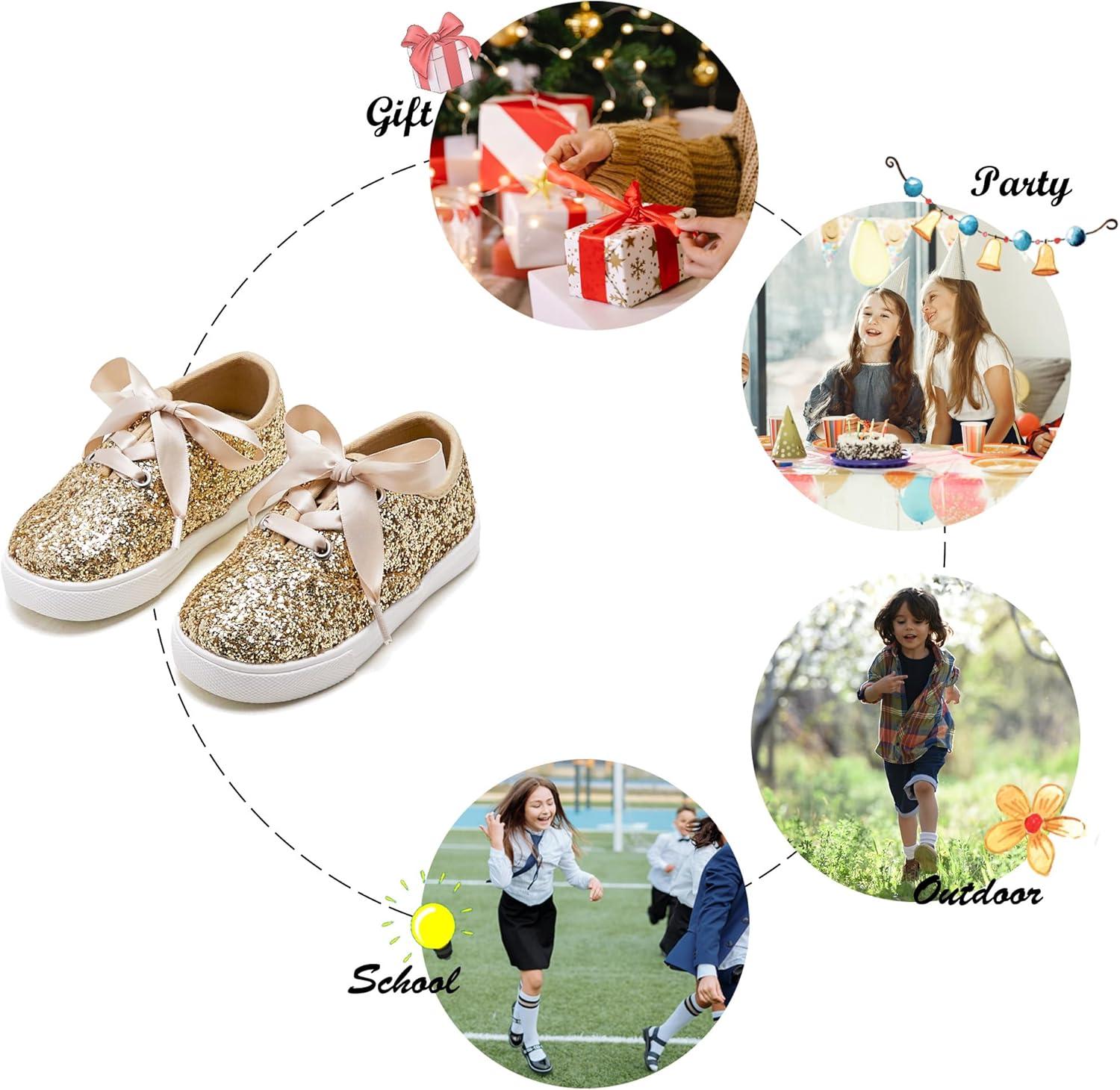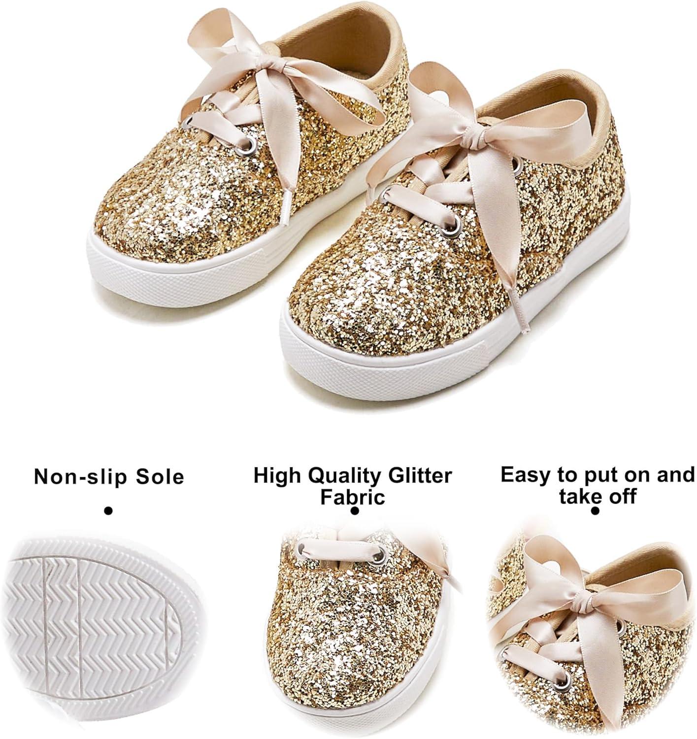 Felix & Flora Toddler/Little Kid Girls Running Shoes Sports Sneakers Princess Casual Glitter Shoes.(Bs821-glitter Gold)