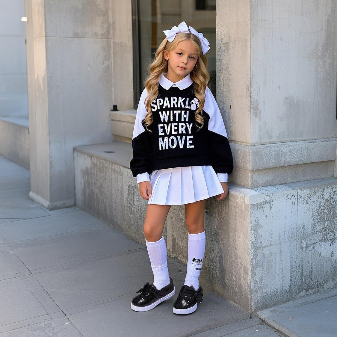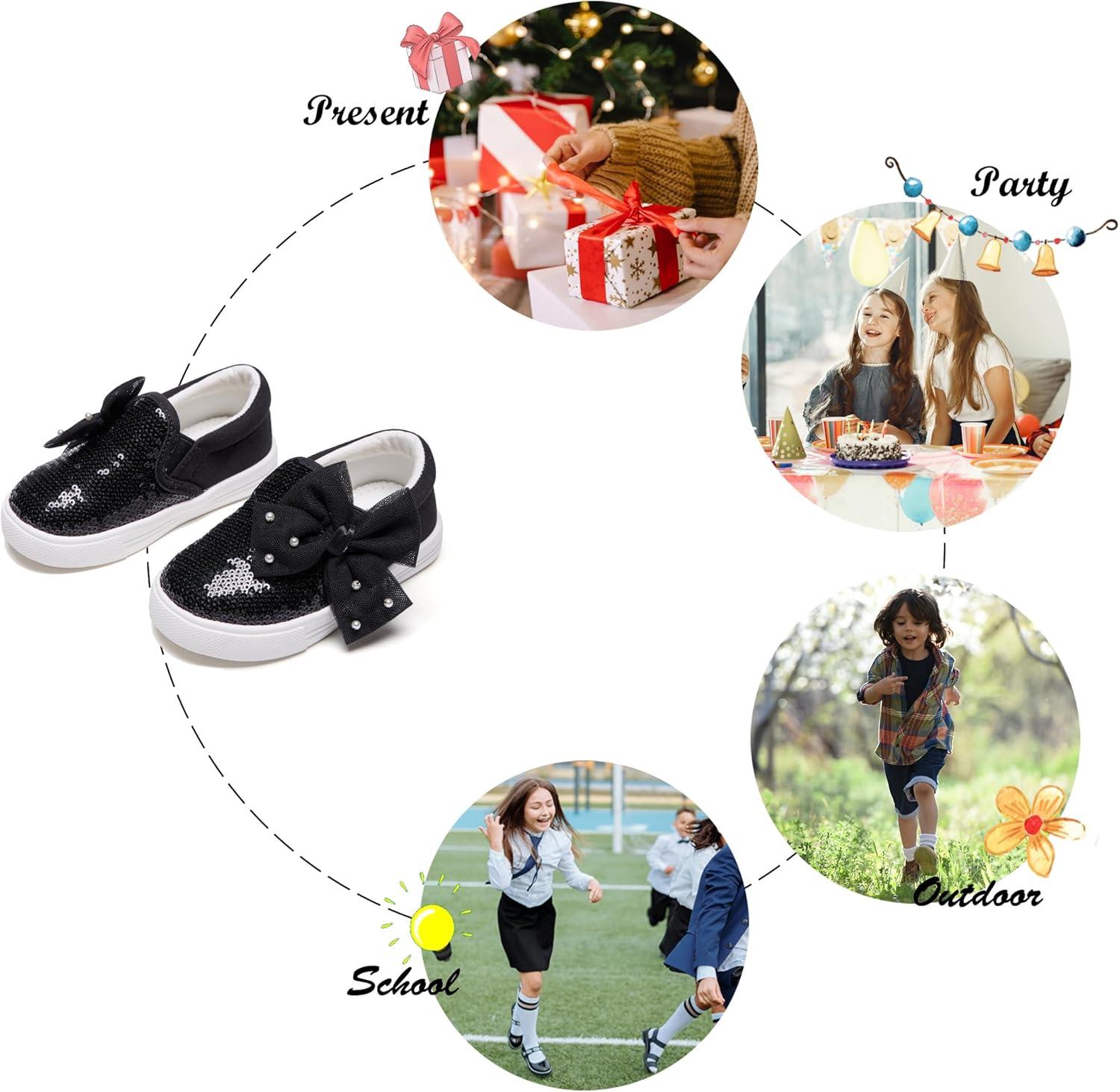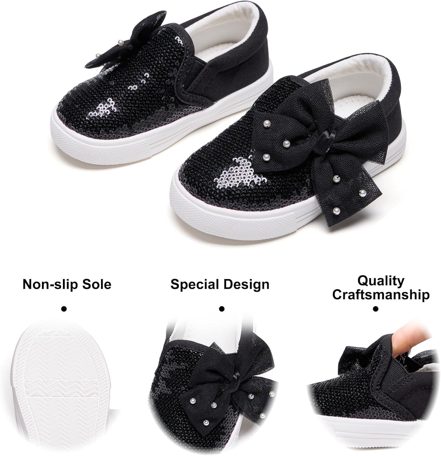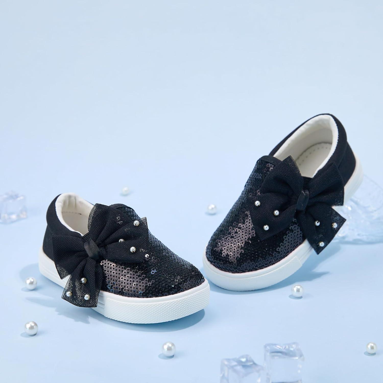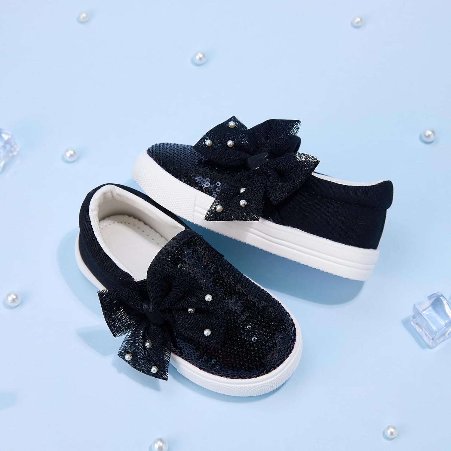 Felix & Flora Toddler/Little Kid Girls Running Shoes Sports Sneakers Princess Casual Glitter Shoes.(Bs823-black)