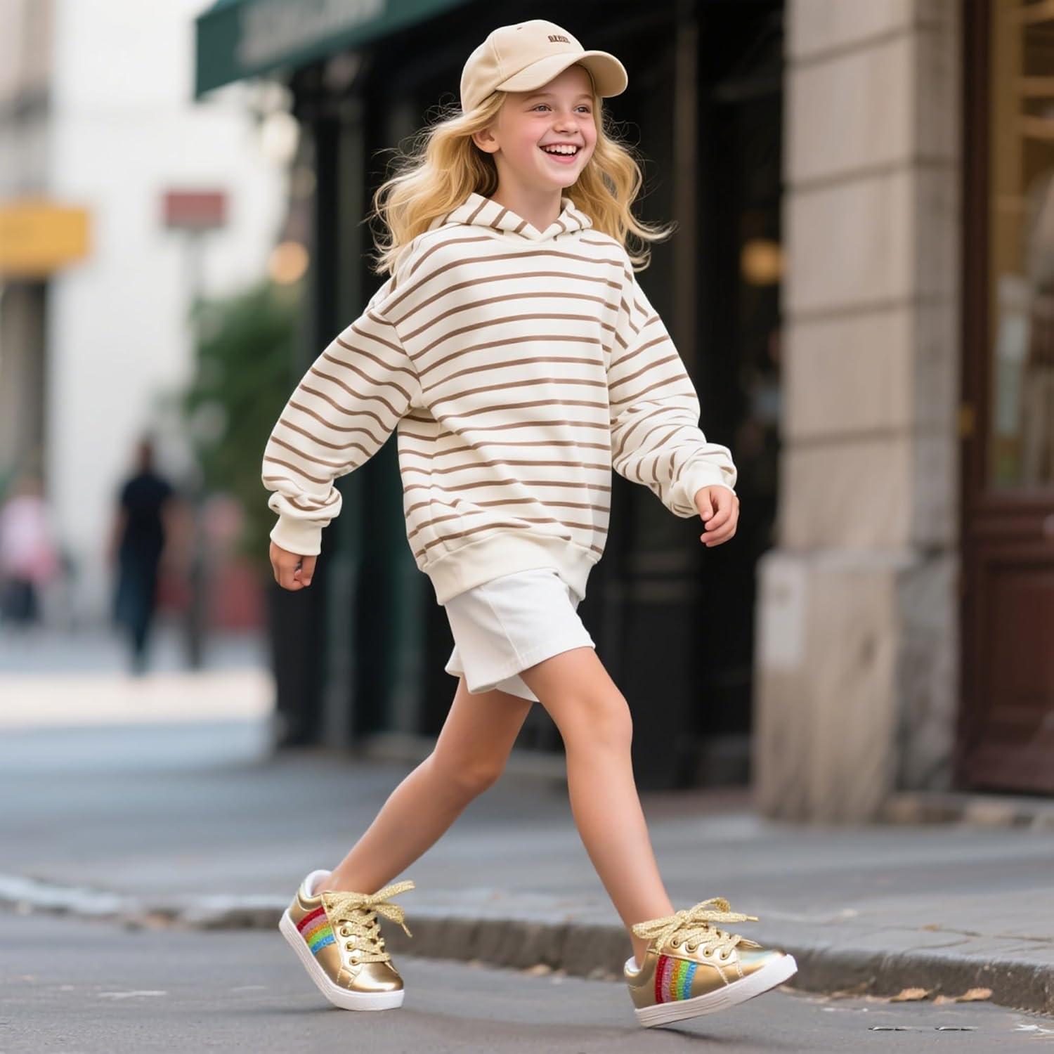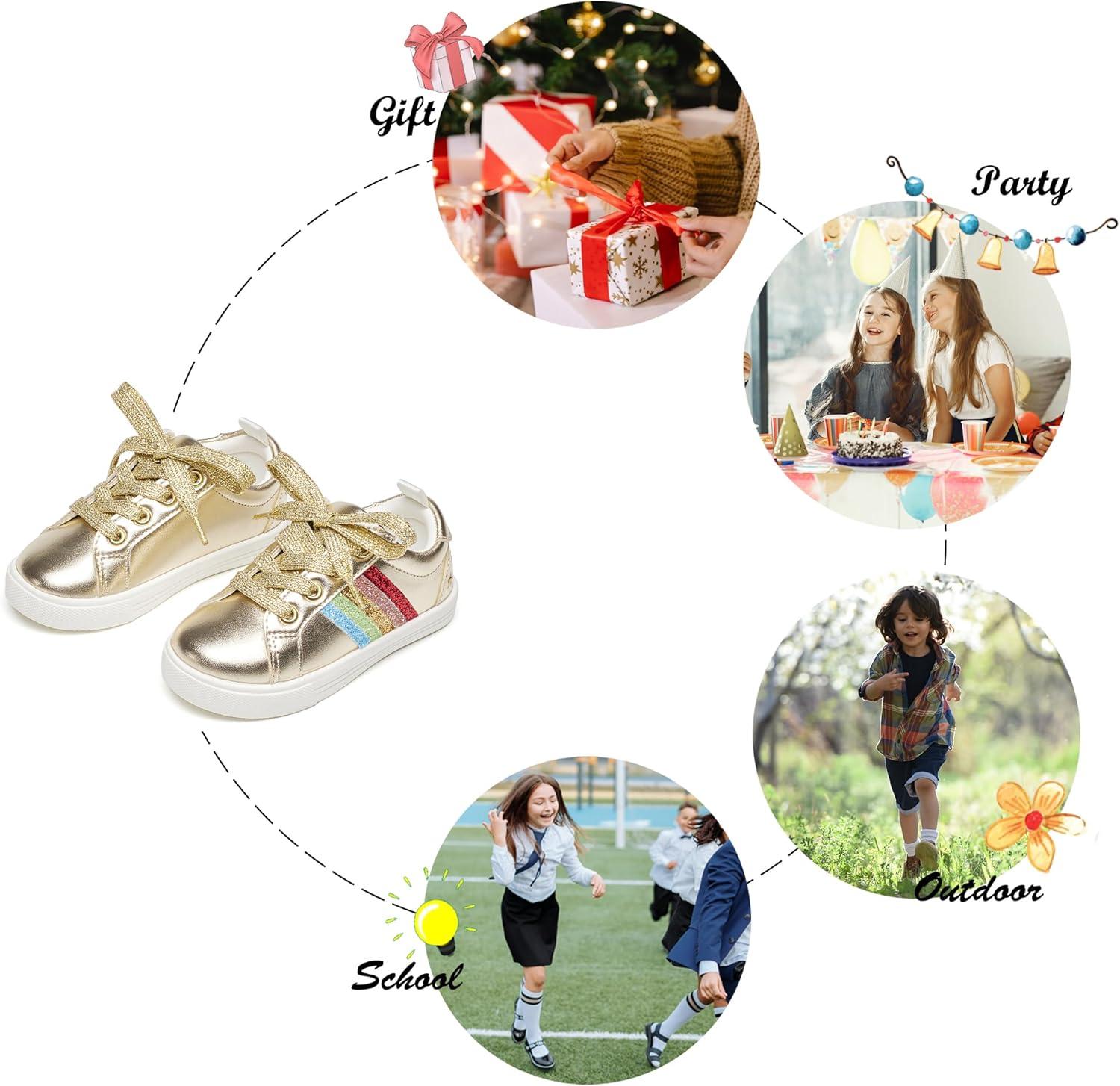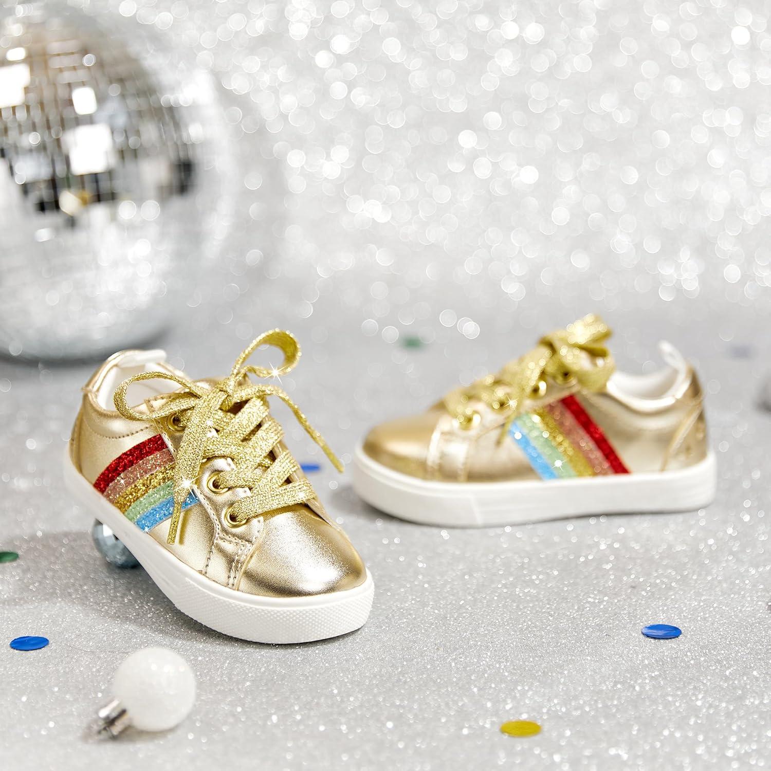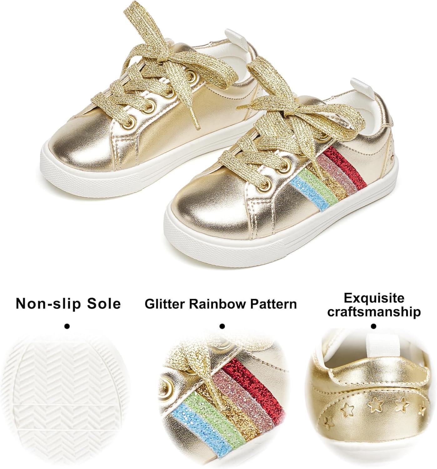 Felix & Flora Toddler/Little Kid Girls Running Shoes Sports Sneakers Princess Casual Glitter Shoes.(Bs824-gold)