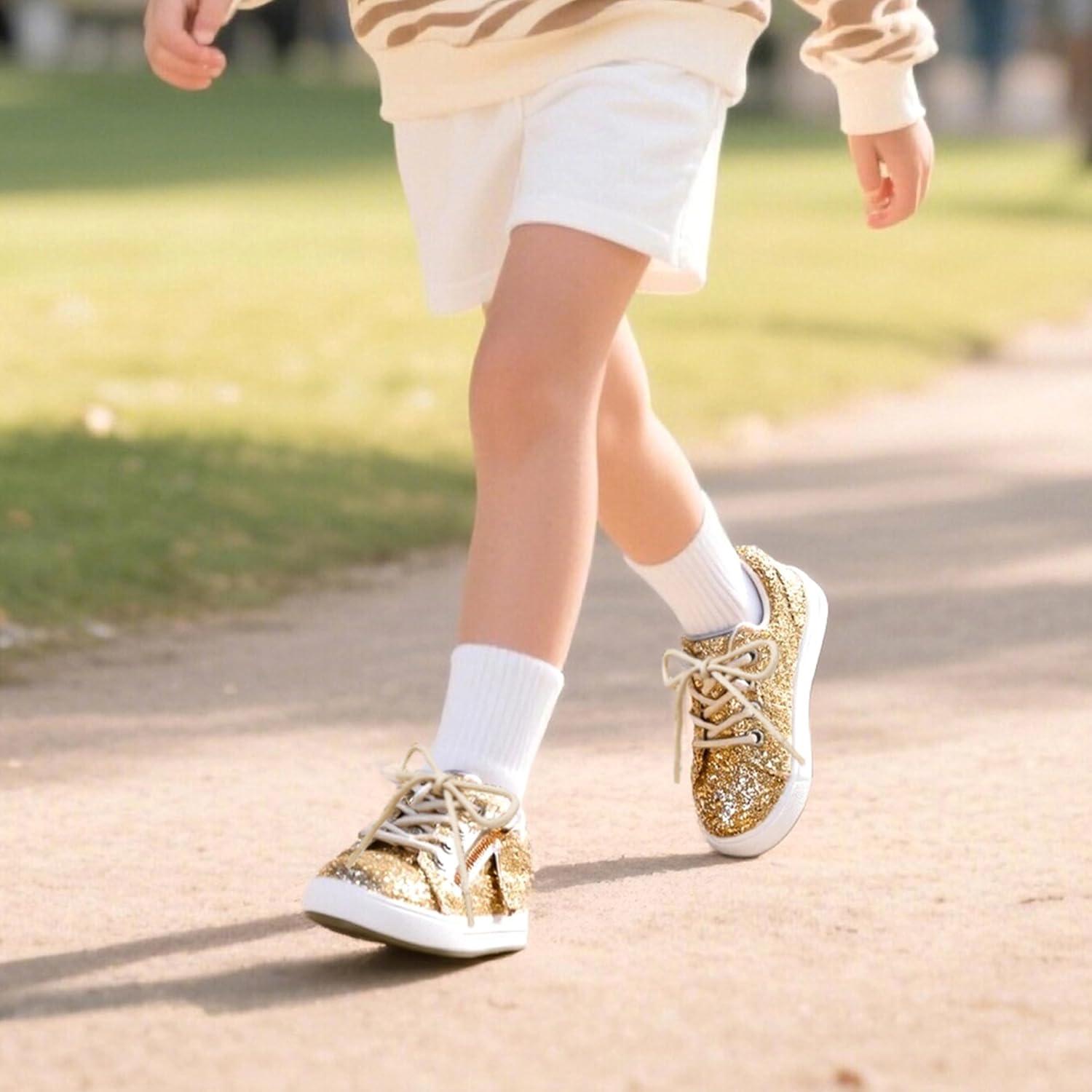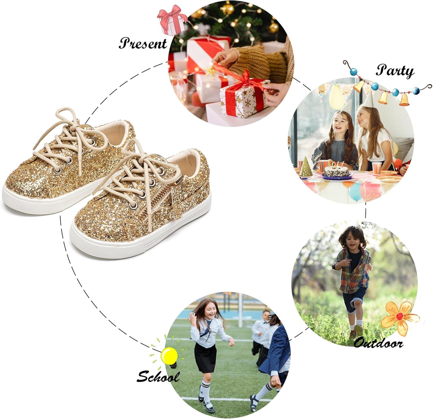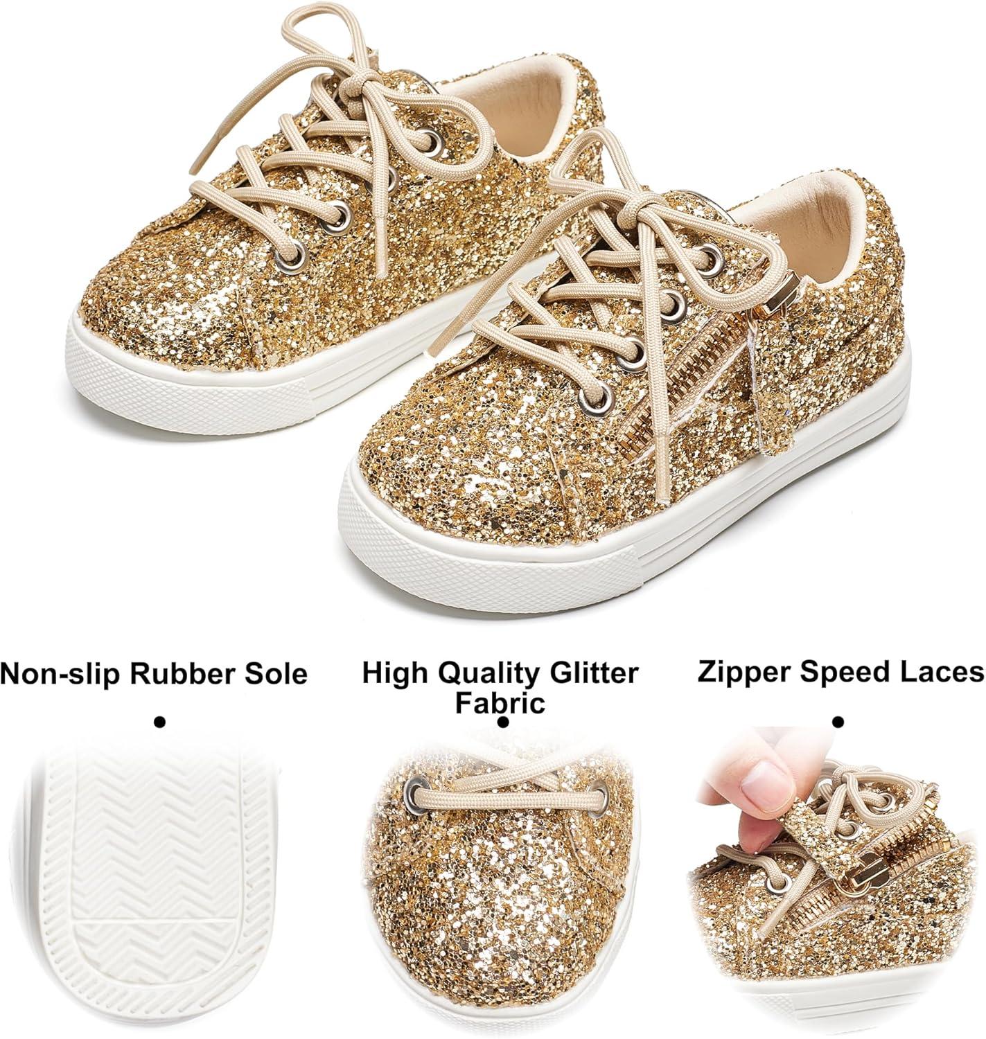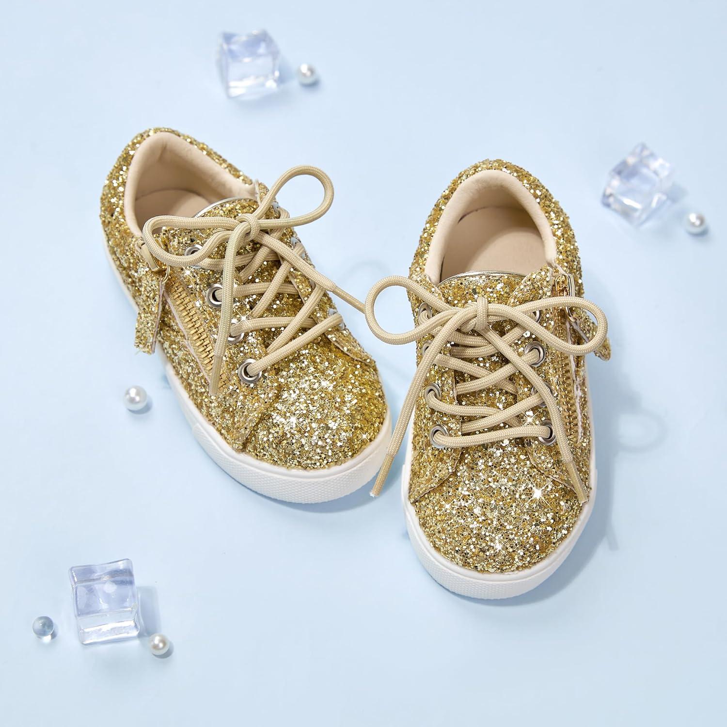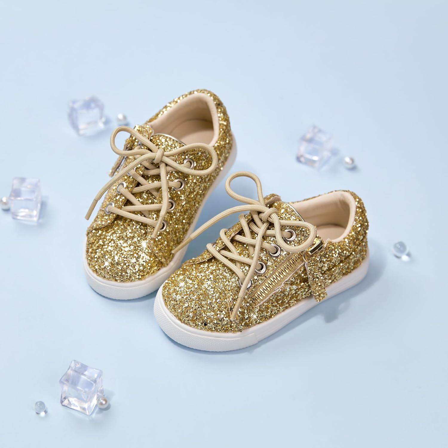 Felix & Flora Toddler/Little Kid Girls Running Shoes Sports Sneakers Princess Casual Glitter Shoes.(Bs827-glitter Gold)