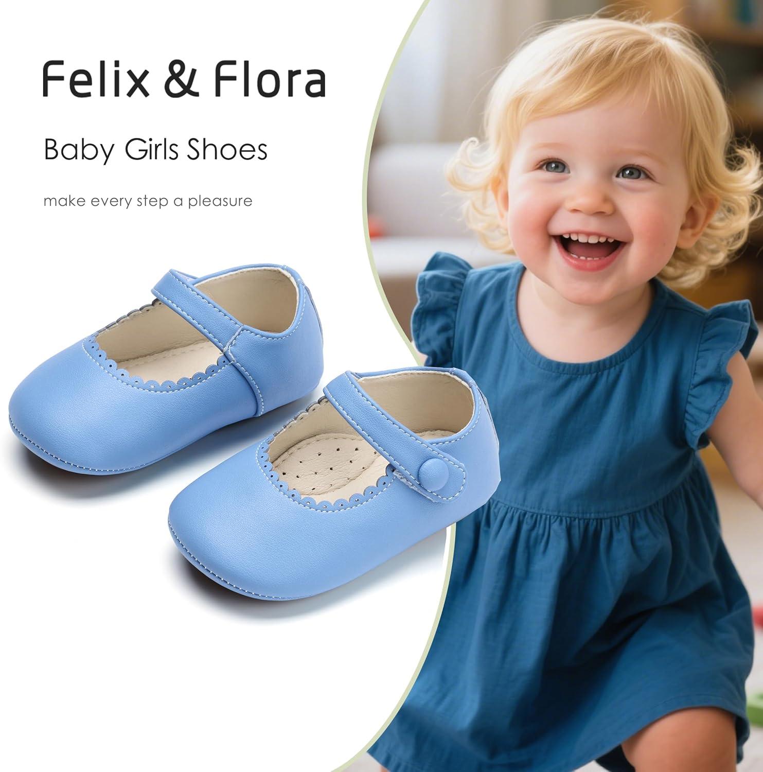 Soft Sole Baby Dress Shoes – Infant Baby Walking Shoes Moccasinss Rubber Sole Crib Shoes(B8725-light Blue)