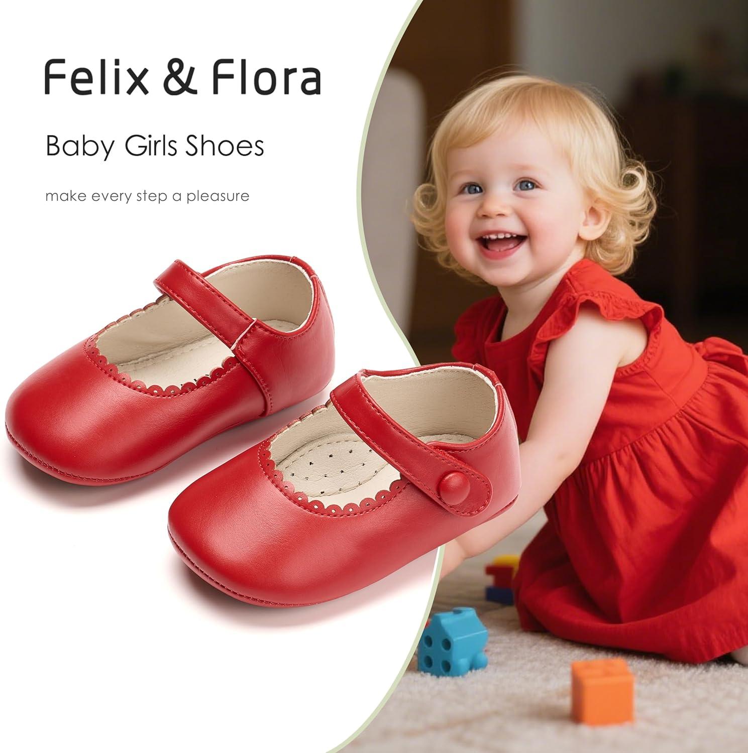 Soft Sole Baby Dress Shoes – Infant Baby Walking Shoes Moccasinss Rubber Sole Crib Shoes(B8725-red)
