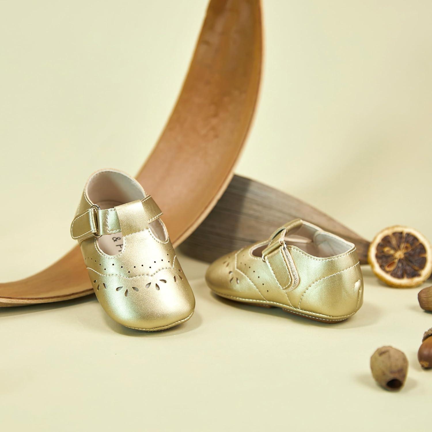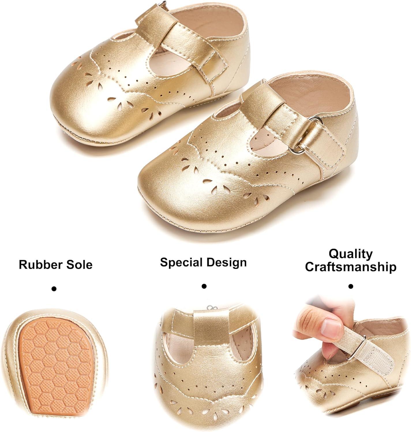 Soft Sole Baby Dress Shoes – Infant Baby Walking Shoes Moccasinss Rubber Sole Crib Shoes(B8726-gold)