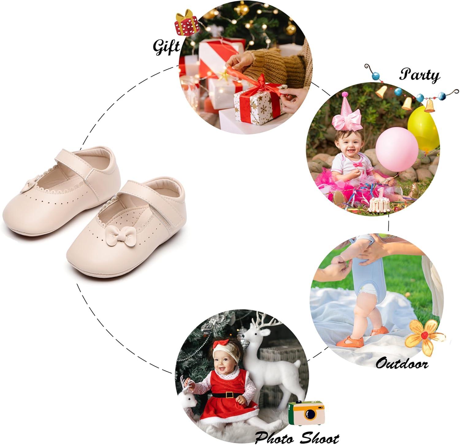 Soft Sole Baby Dress Shoes – Infant Baby Walking Shoes Moccasinss Rubber Sole Crib Shoes(B8727-beige)