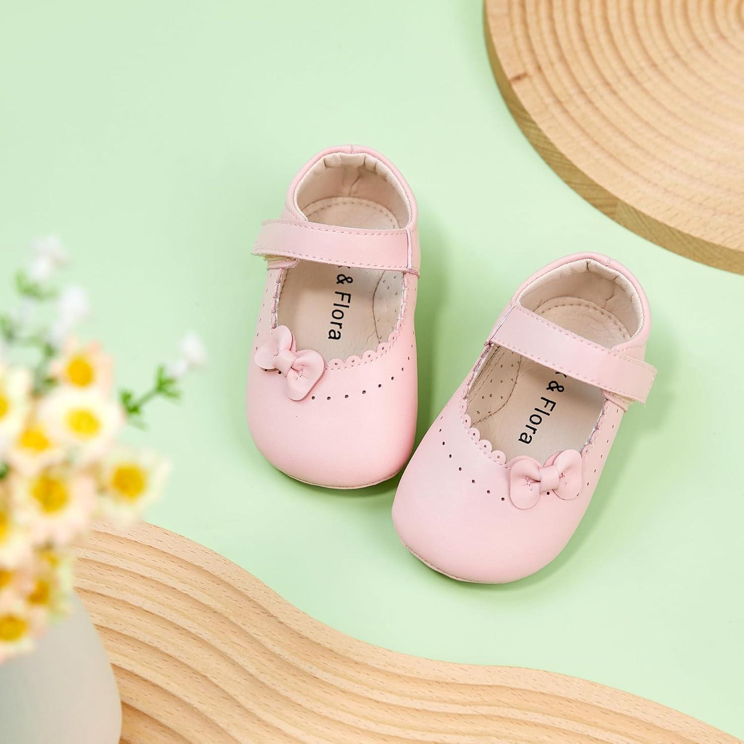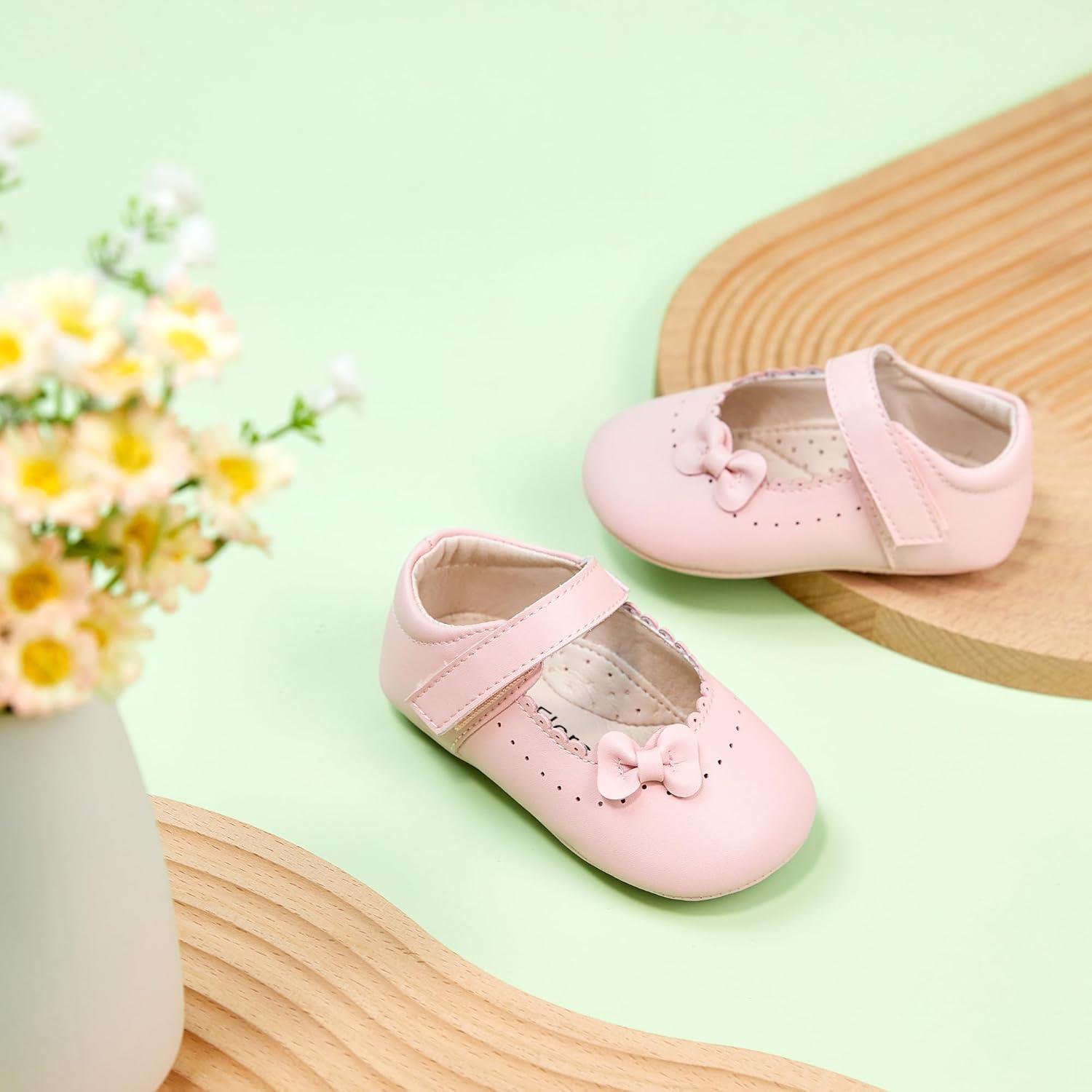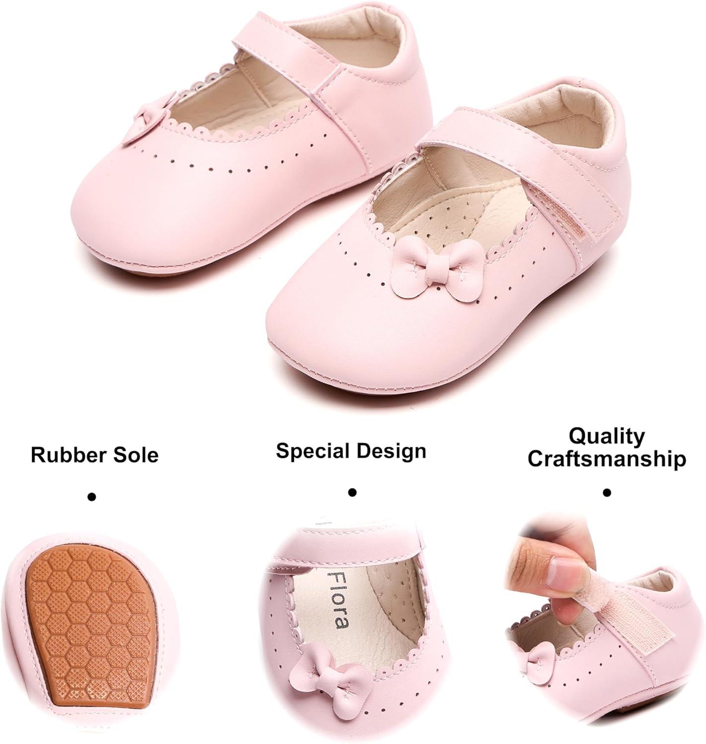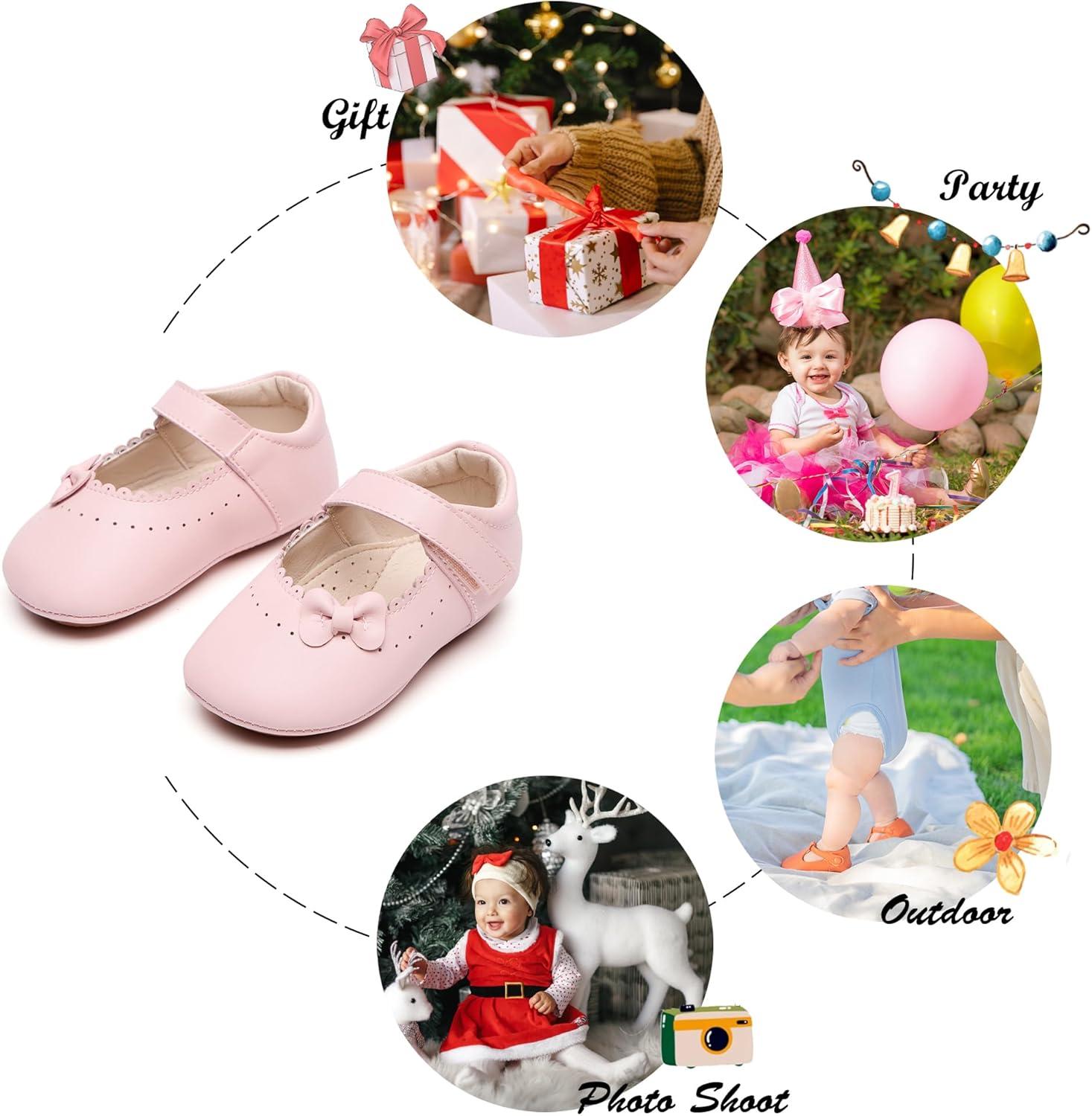 Soft Sole Baby Dress Shoes – Infant Baby Walking Shoes Moccasinss Rubber Sole Crib Shoes(B8727-pink)