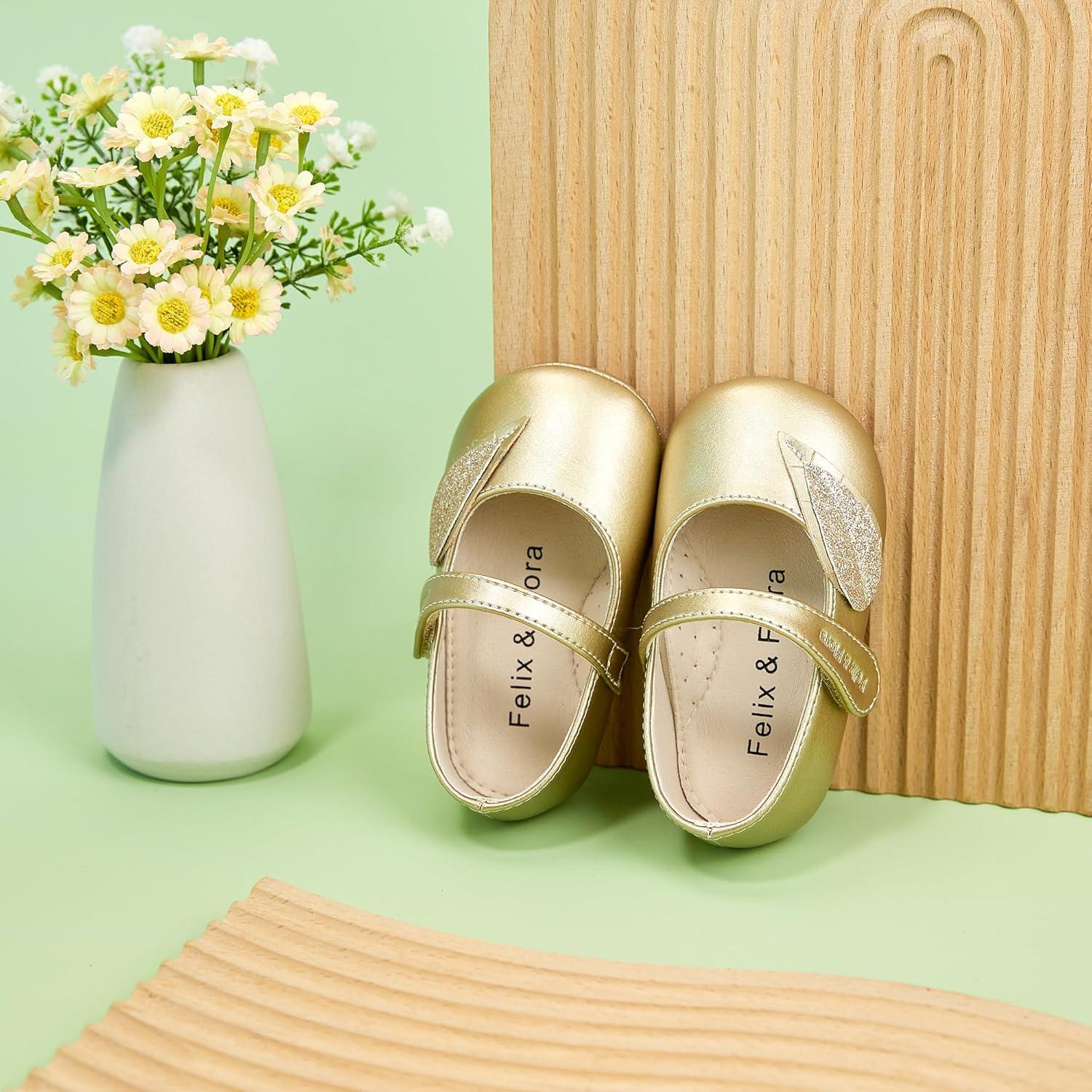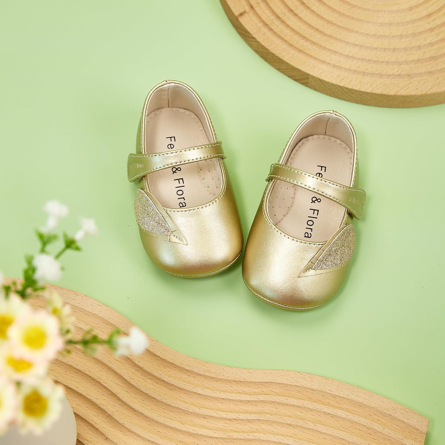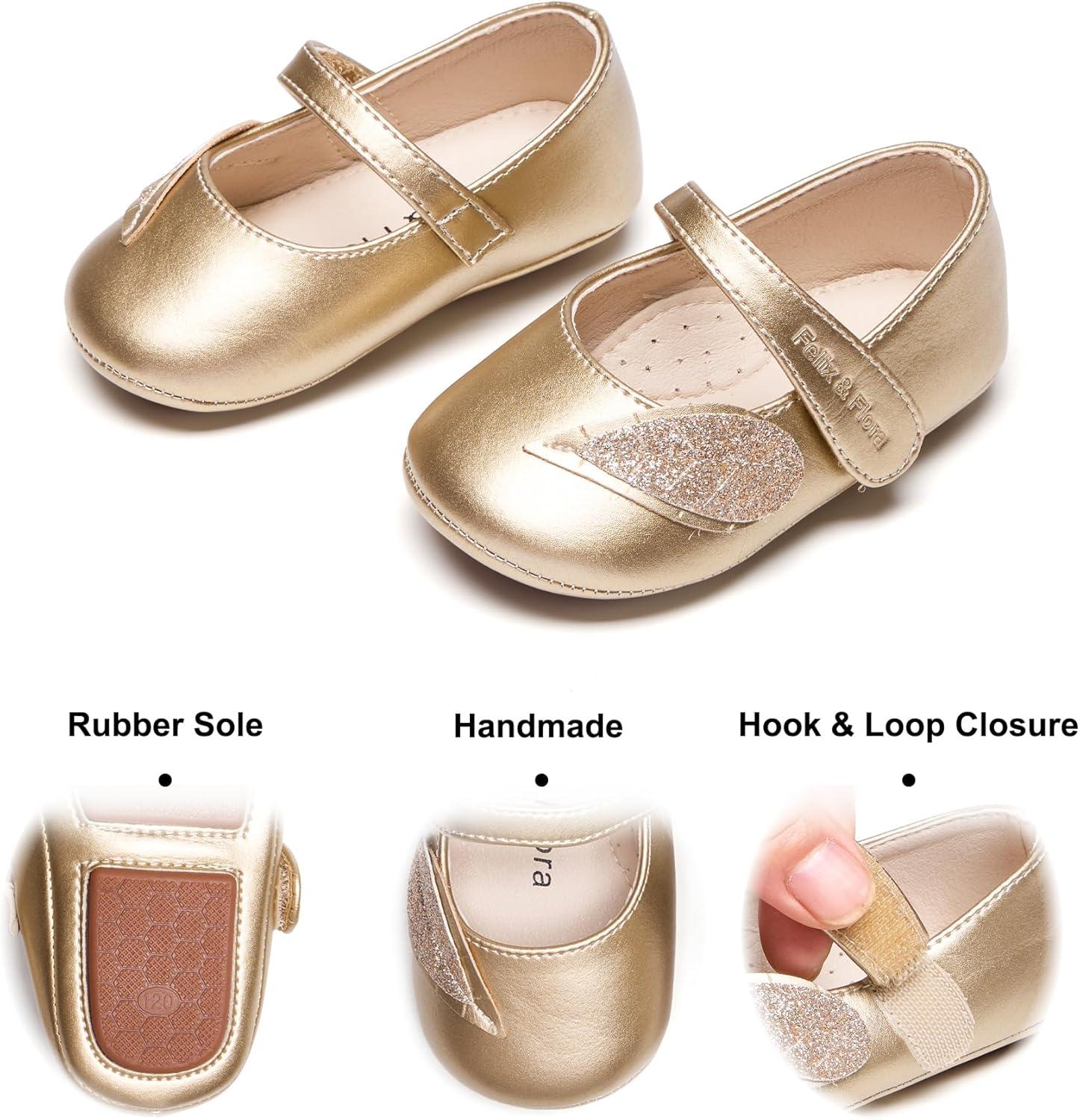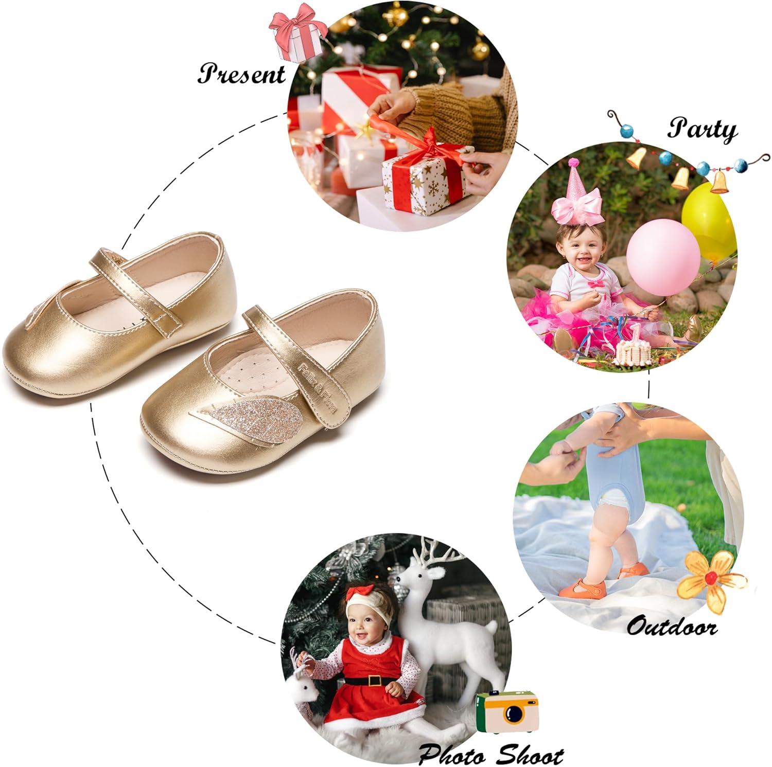 Soft Sole Baby Dress Shoes – Infant Baby Walking Shoes Moccasinss Rubber Sole Crib Shoes(B8729-gold)
