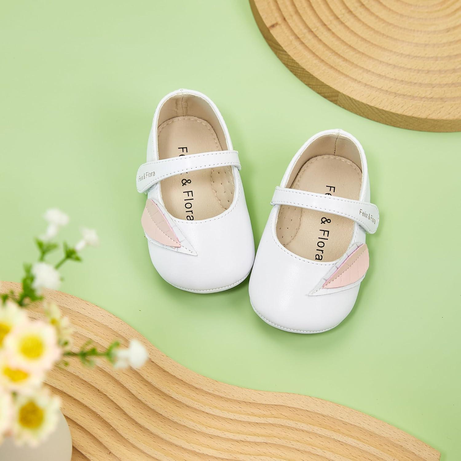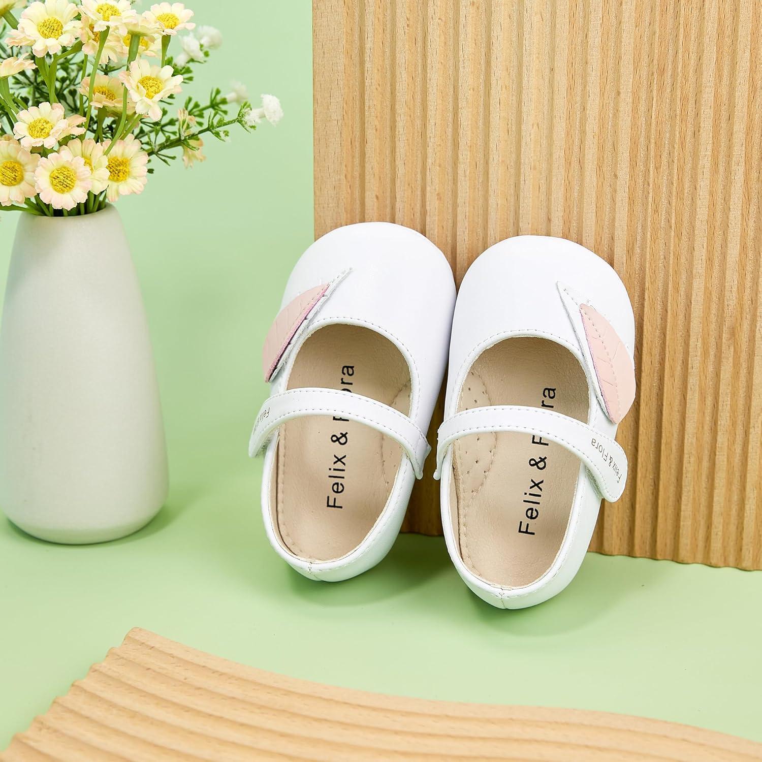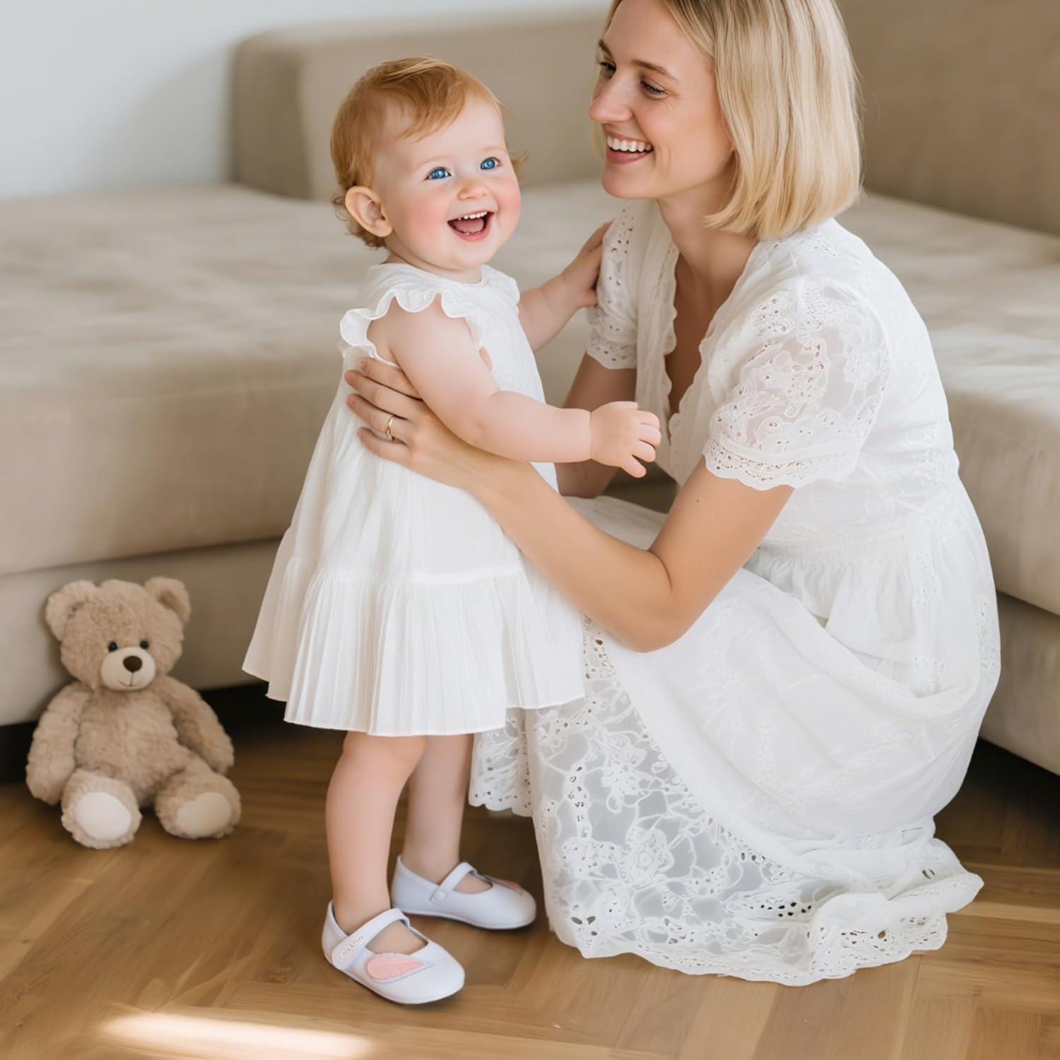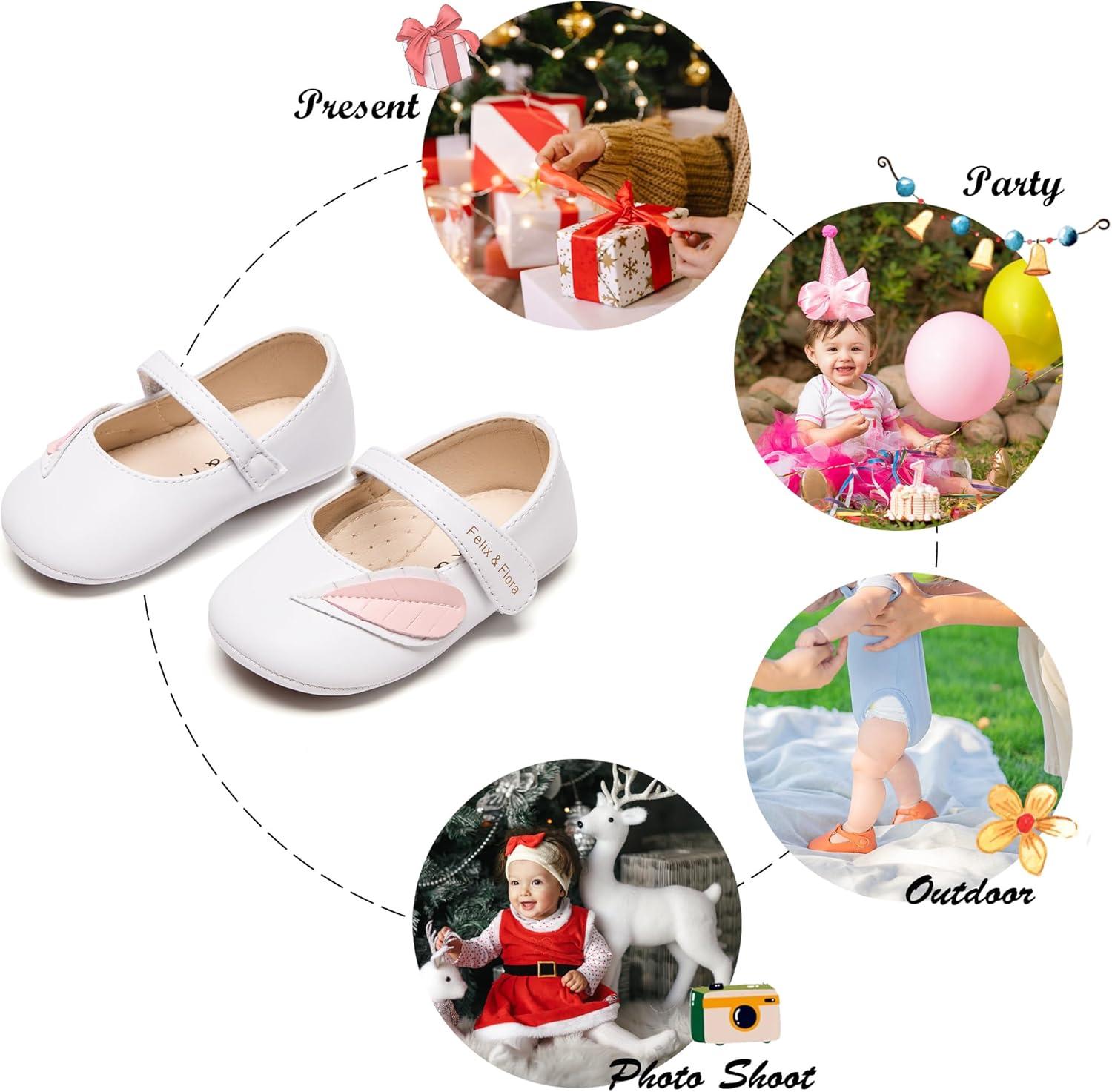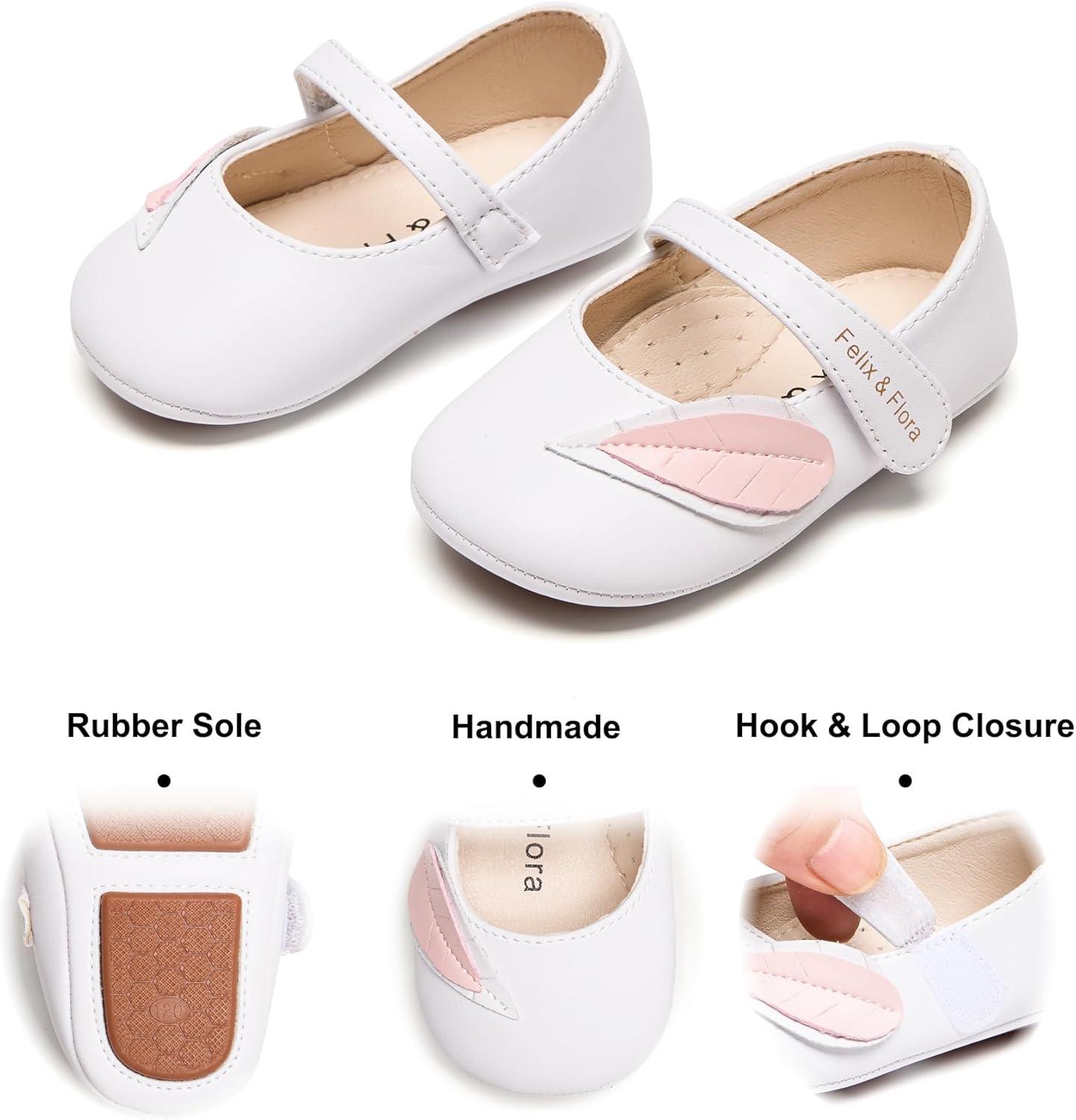 Soft Sole Baby Dress Shoes – Infant Baby Walking Shoes Moccasinss Rubber Sole Crib Shoes(B8729-white)