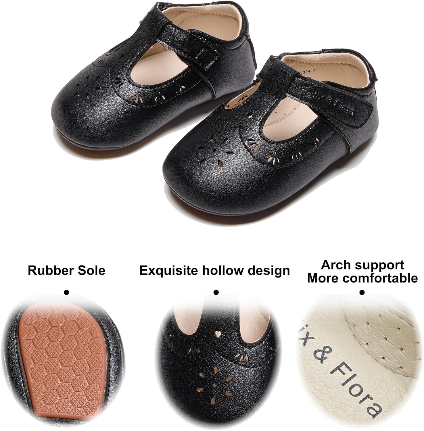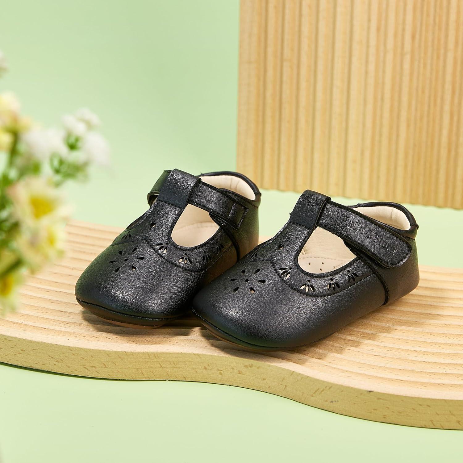 Soft Sole Baby Dress Shoes – Infant Baby Walking Shoes Moccasinss Rubber Sole Crib Shoes(B8730-black)