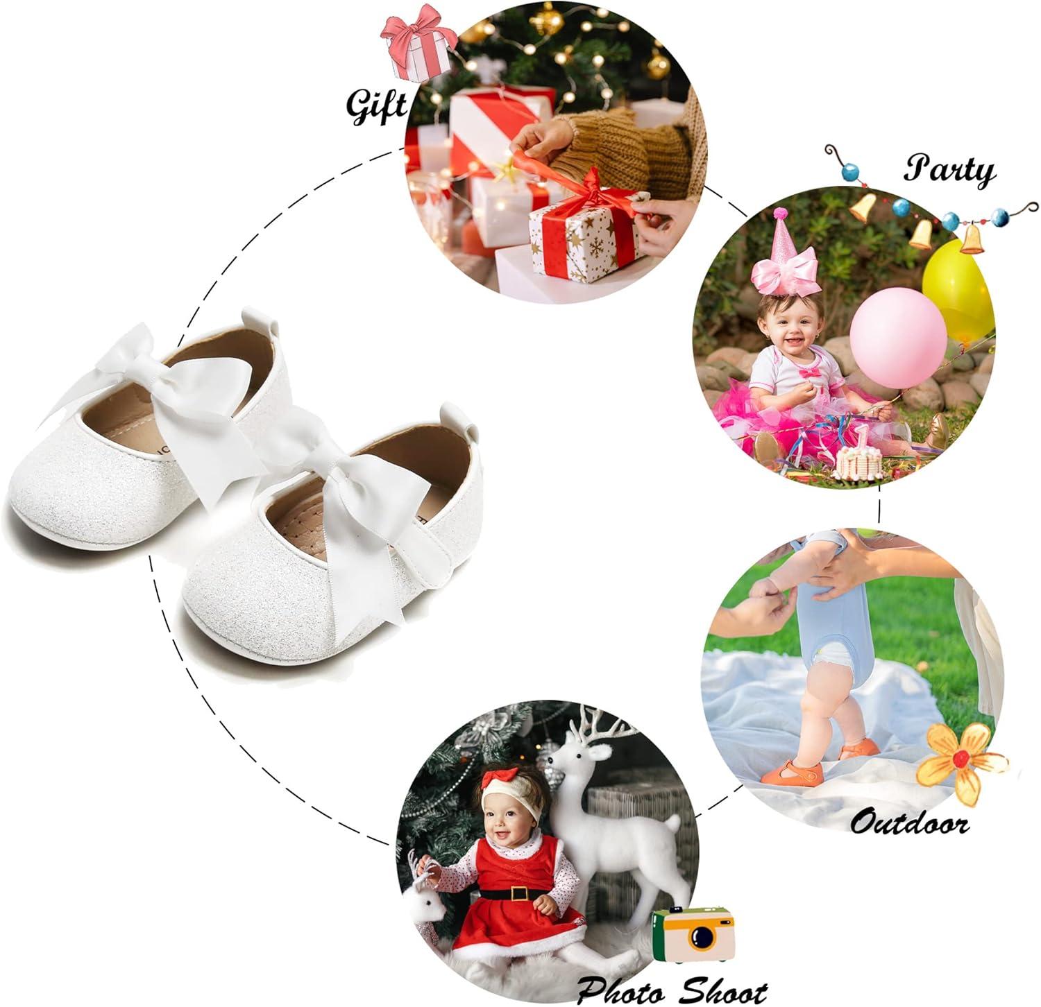 Soft Sole Baby Shoes – Infant Baby Walking Shoes Moccasins Rubber Sole Crib Shoes(B6638-glitter White)